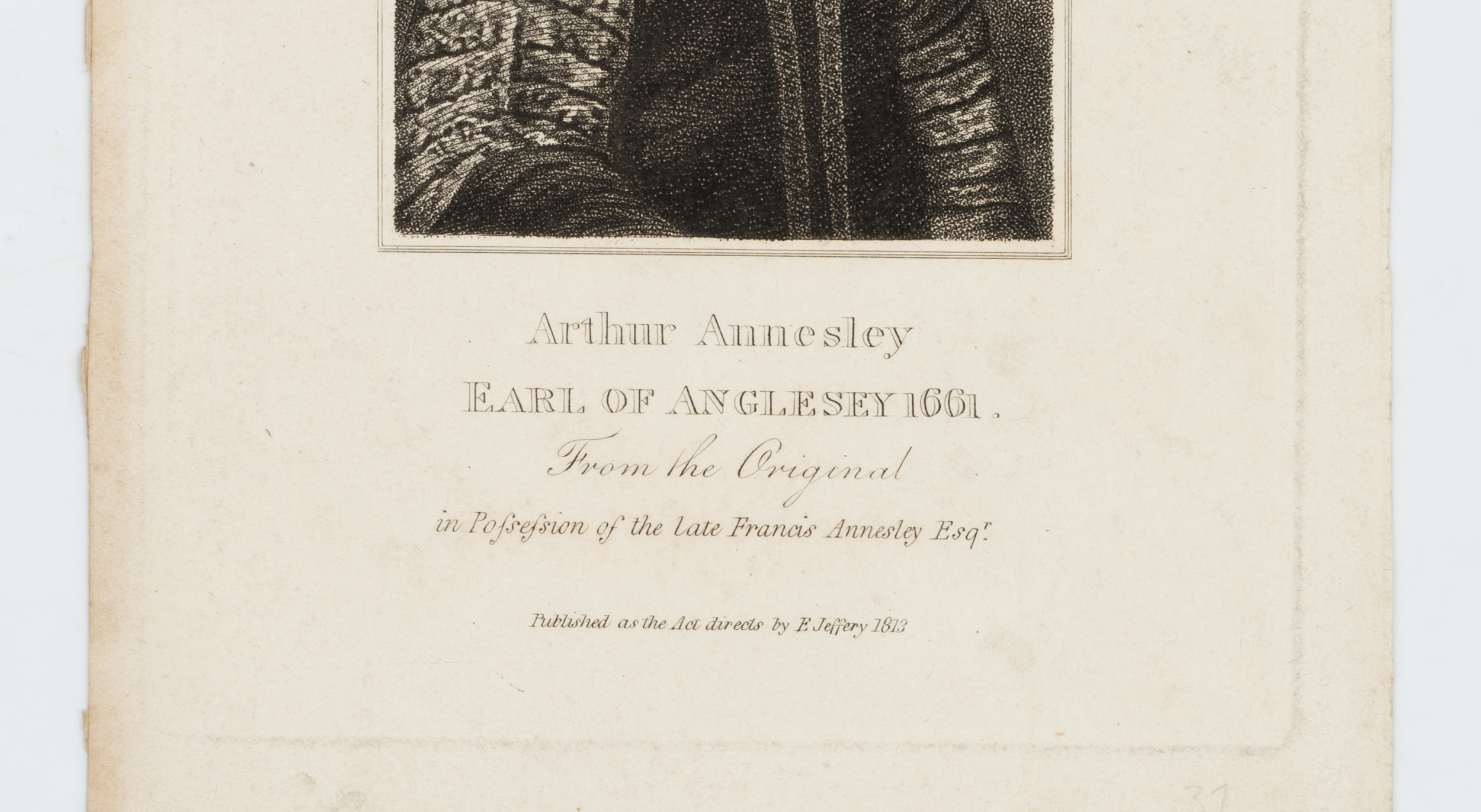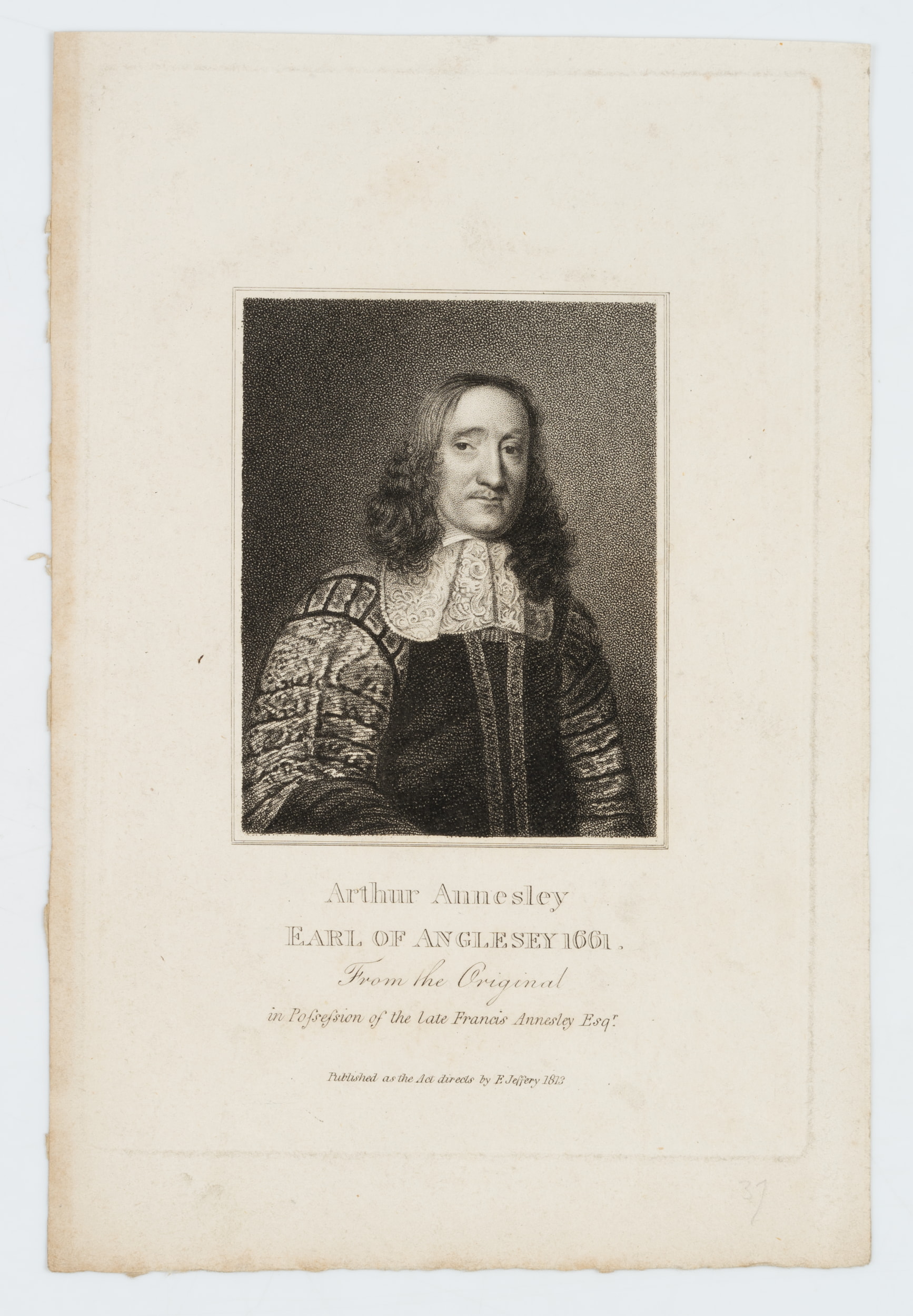 Unbekannt (17. Jahrhundert), Portrait des Arthur Annesley als Bruststück mit Spitzenkragen und verziertem Wams, 1813, Punktierstich
