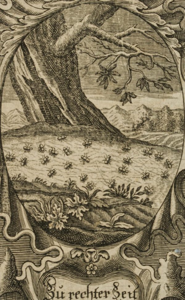 - Description: The picture is inscribed below with the title “Zu rechter Zeit”. Illustration from Johann Arndt’s (1555-1621) compilation “Sechs Bücher vom wahren Christentum nebst dessen Paradies-Gärtlein”. Backside with typographic print. Please note our other offers on Johann Arndt’s compilation.