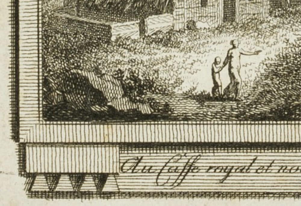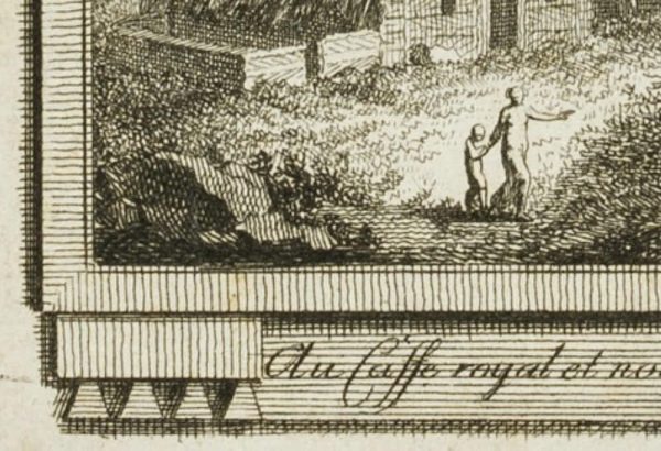 - Beschreibung: Abbildung aus dem Werk Johann Georg Sulzer’s „Tagebuch einer Reise von Berlin nach den mittäglichen Ländern von Europa (1780)“. Mitte unten bezeichnet „Au Caffé royal et noble Jeu de Billard“.