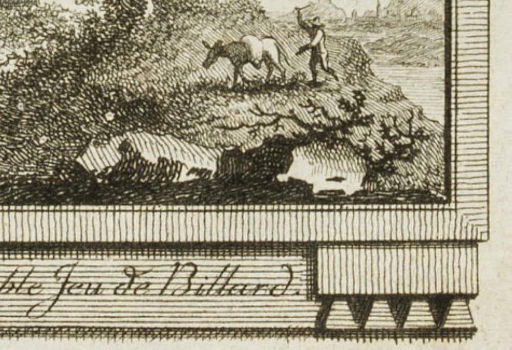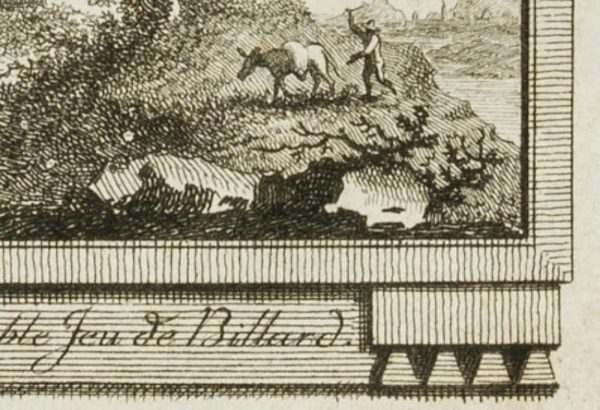 - Description: Illustration from Johann Georg Sulzer’s „Tagebuch einer Reise von Berlin nach den mittäglichen Ländern von Europa (1780)“. Inscribed in the lower centre „Au Caffé royal et noble Jeu de Billard“.