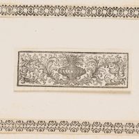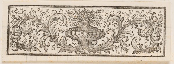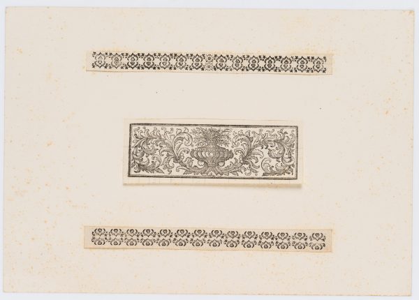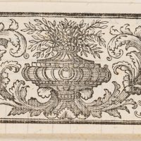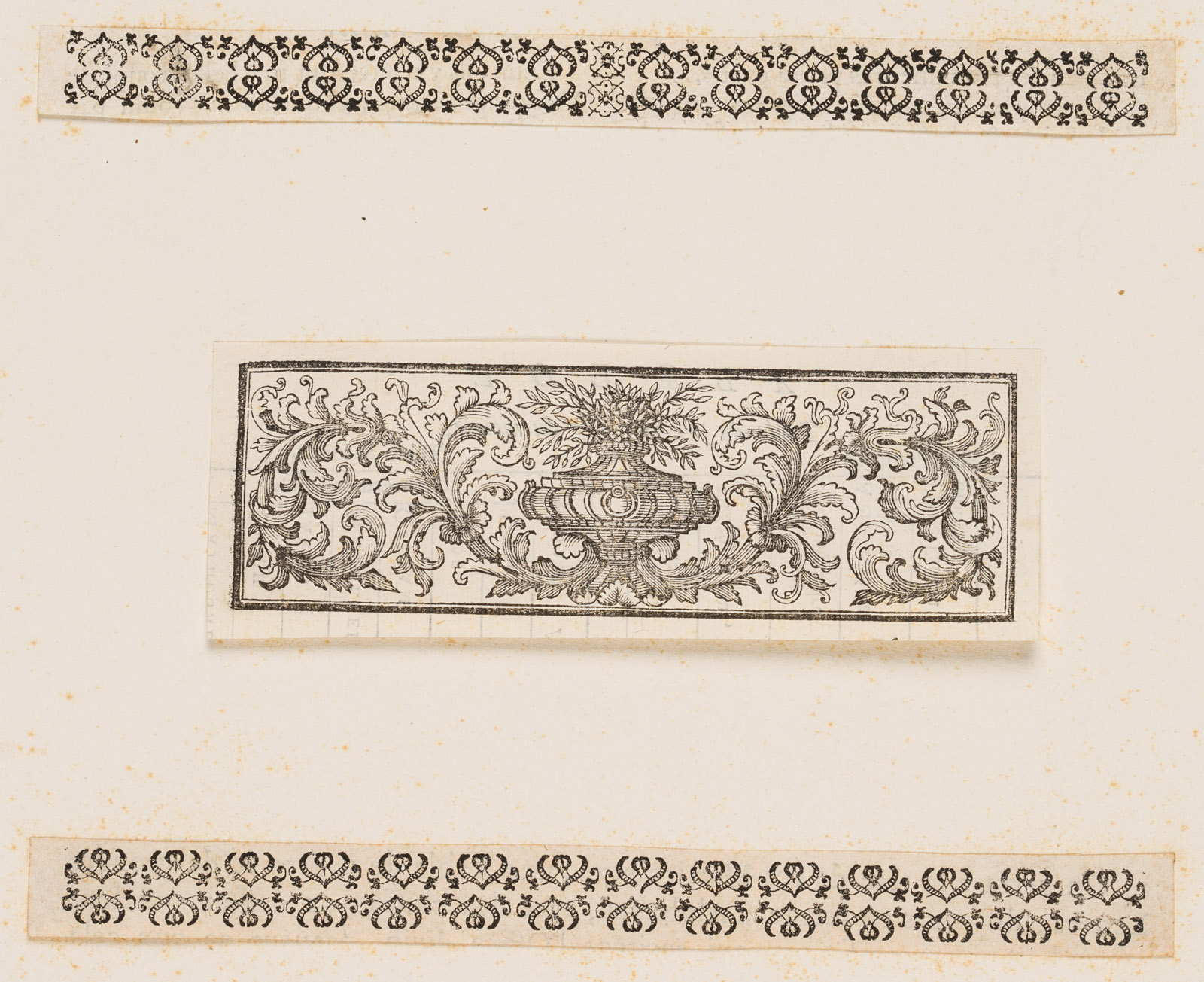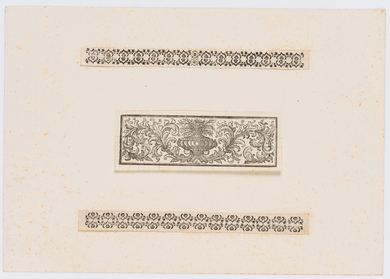 Unknown (18th century), French, Baroque book decoration Two narrow and one wide moulding with floral bouquet and floral vine work, 1735, Woodcut
