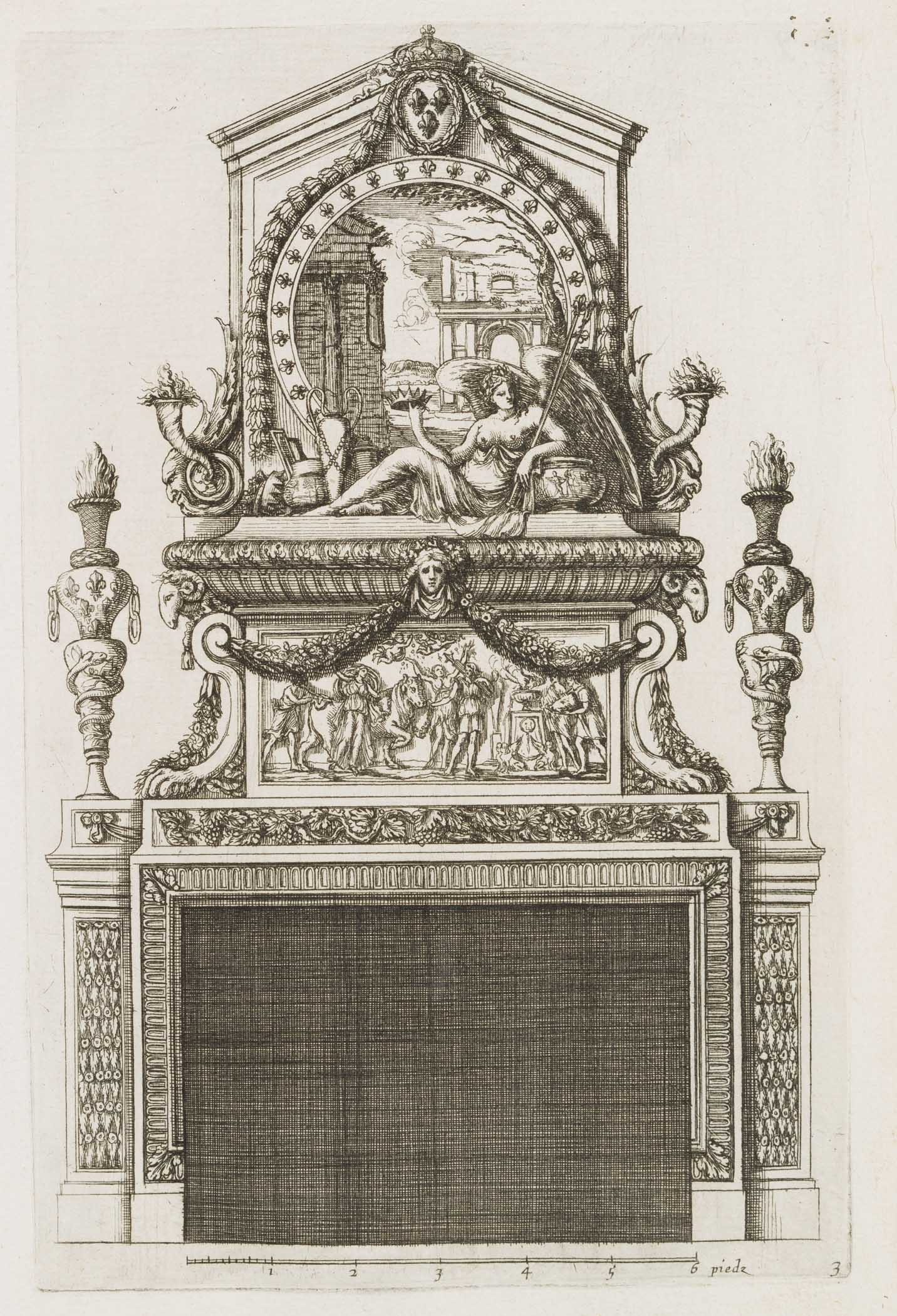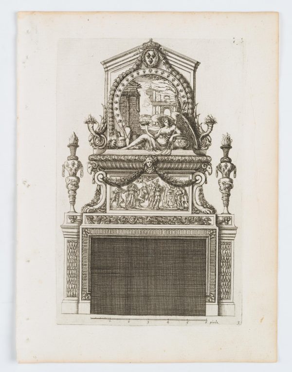 - Keywords: Fireplace decoration, fireplace template, template sheet, fireplace, mythological figure decoration, 18th century, Baroque, Architecture, France,