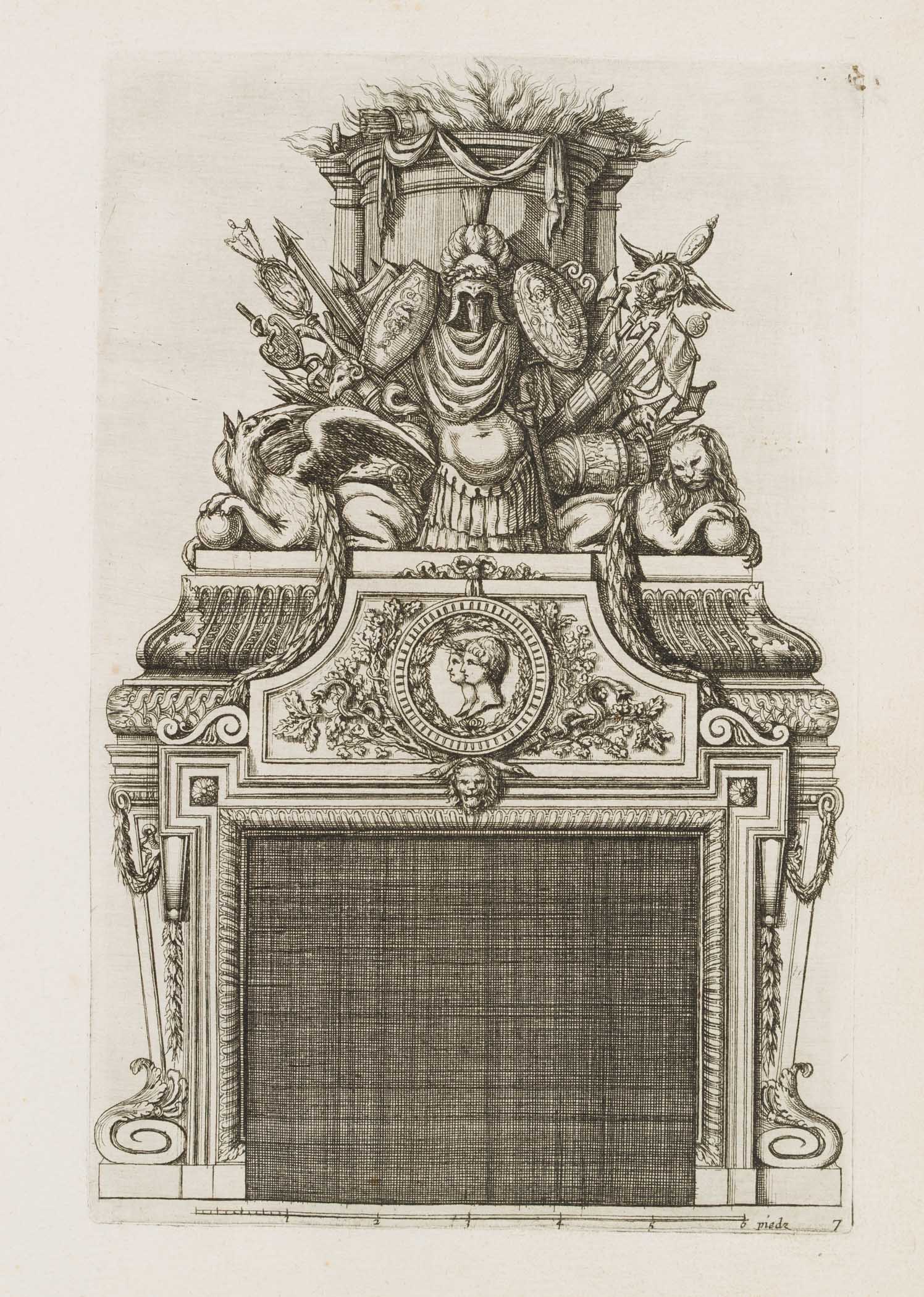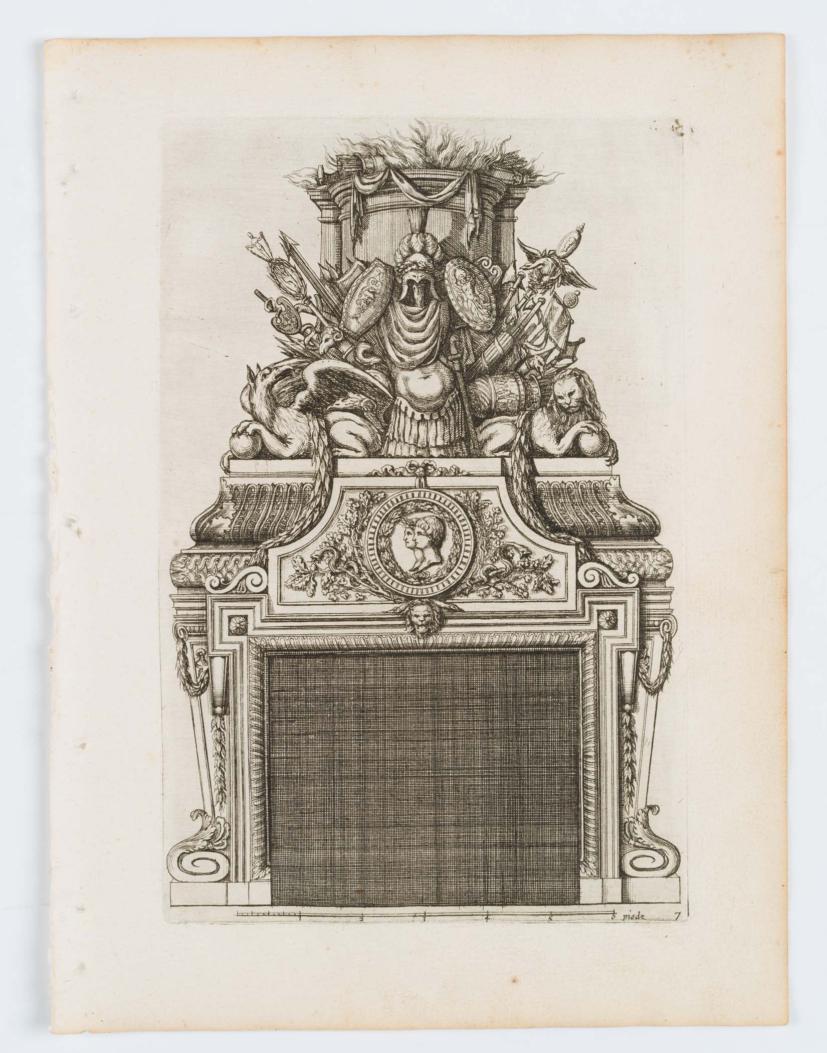 Unbekannt (18. Jahrhundert), Barocker Kaminentwurf. Vorlage 7, um 1750, Kupferstich