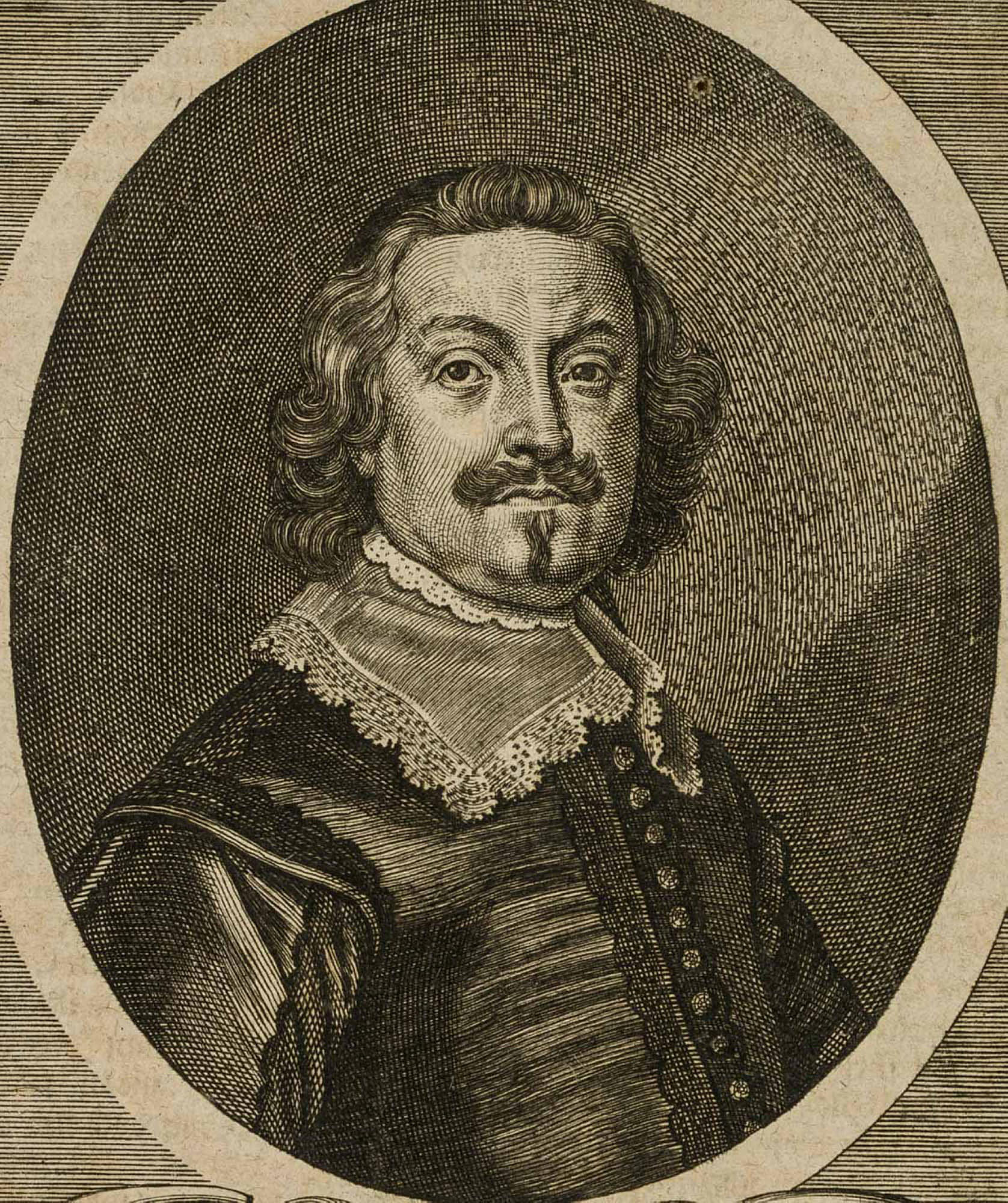 Unter dem oval gerahmten Porträt sind auf Lateinisch der Name des Dargestellten und seine Ämter gelistet.