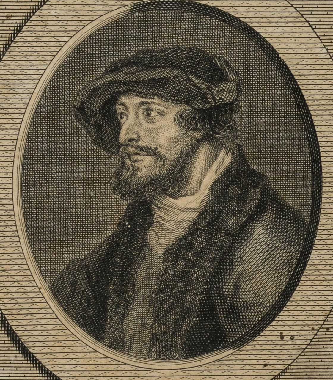 Unknown (18th century), Half-length portrait in three-quarter profile of the humanist Bonifacius Amerbach with beret(1495 Basel – 1562 ibid), 18th century, Copper engraving
