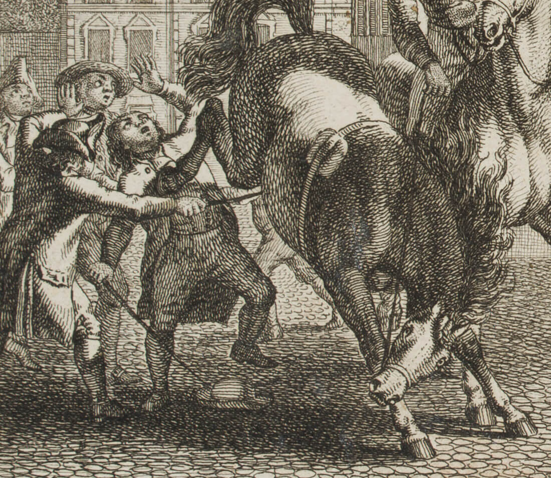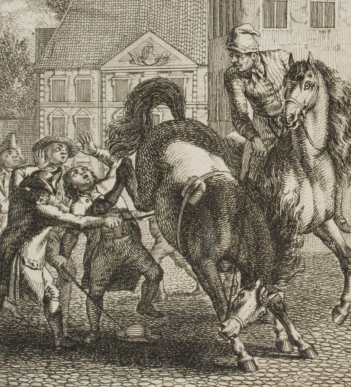 - Schlagworte: Pferd, Austreten, Ausschlagen, Hinterbeine, Pferdeunfall, Schläger, Personen, Literatur, Deutschland, Pferd, Rokoko, 1700-1749