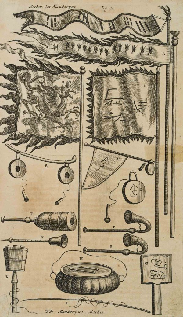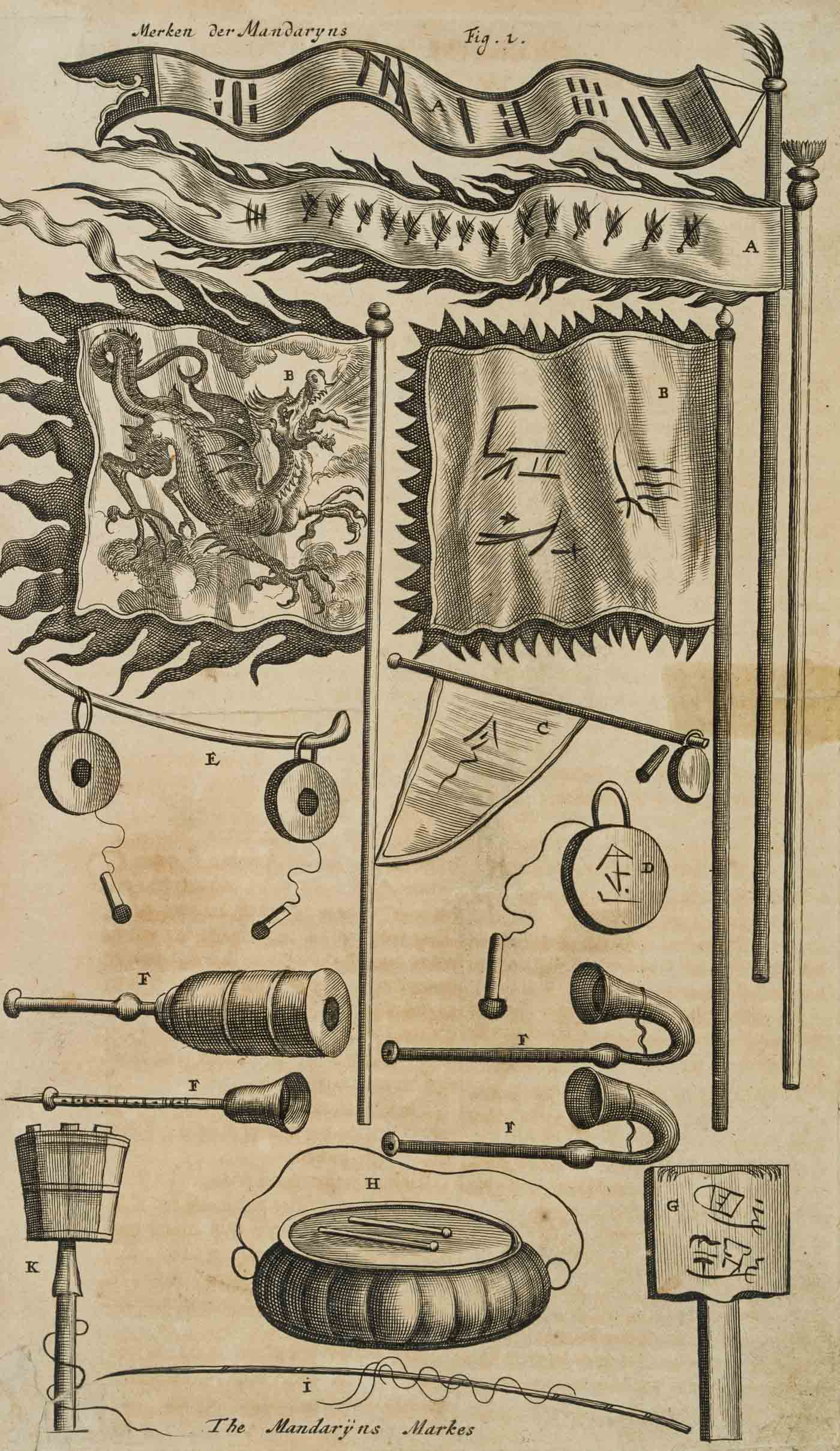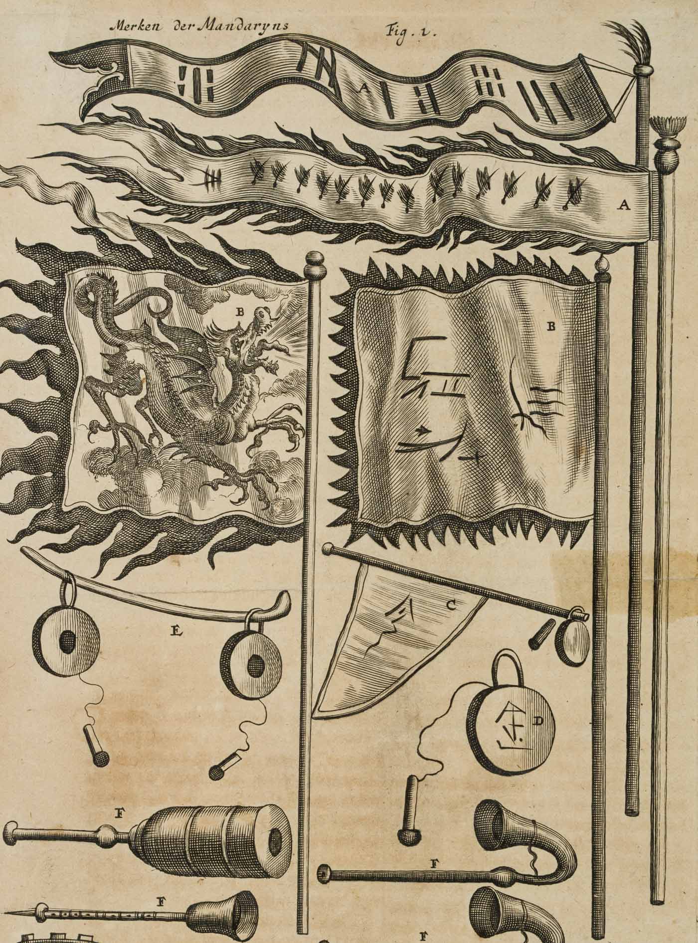 Unknown (18th century), Chinese flags and instruments, 18th century, Copper engraving