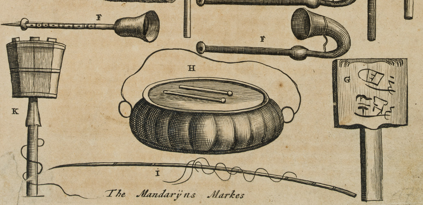 Unbekannt (18. Jahrhundert), Chinesische Flaggen und Instrumente, 18. Jahrhundert, Kupferstich