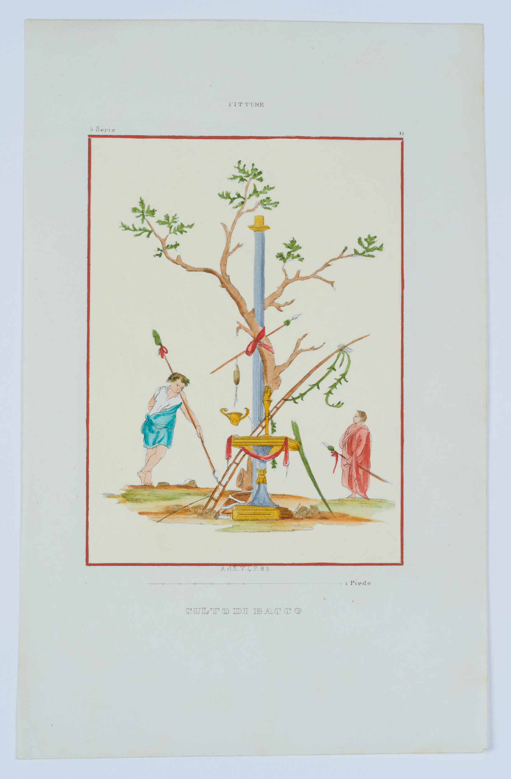 - Bezeichnung: Mittig im Druck bezeichnet: “Pitture | Culto Di Bacco”. Oben mittig im Druck nummeriert: “5 Serie | 11”.