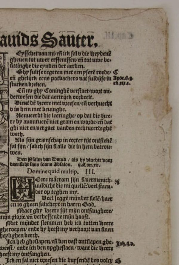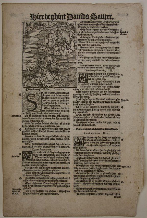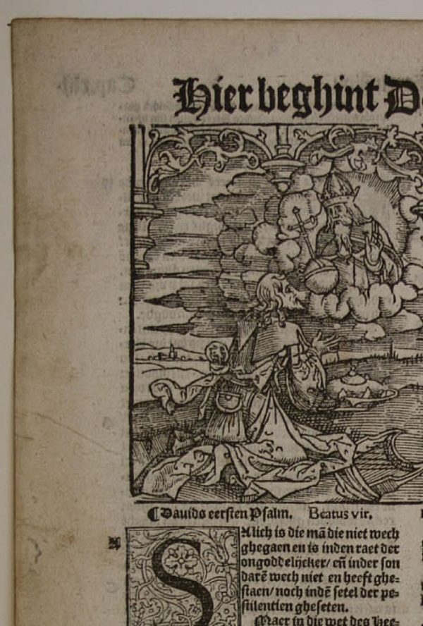 - Description: Dutch artist, David before the Lord, woodcut on a Bible page, 17th century. Description: Woodcut by a Dutch artist, inscribed at the bottom: „Davids eersten Psalm“. Very nice woodcut with a depiction of David before the Lord. Decorative monograms adorn the rest of the page.