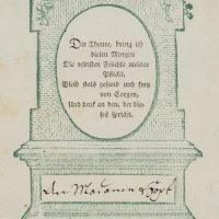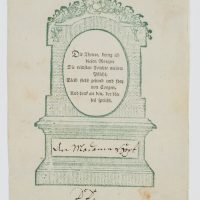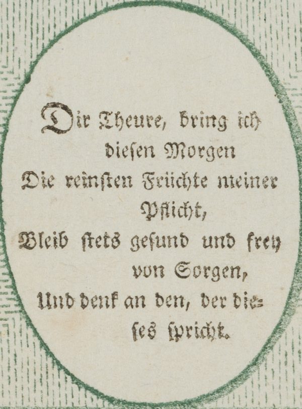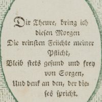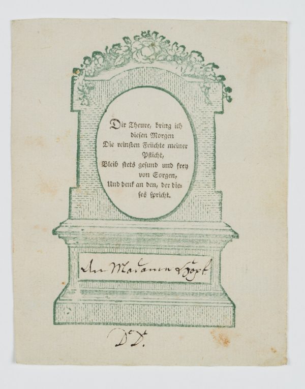 - Description: With congratulatory verses in the cartouche of the monument: “The Theure, I bring this morning. The purest fruits of my duty, Stay ever healthy and free from care, And remember him who speaks this.” In the blank space of the inscription panel, handwritten address to: Marianne Hopf. The sheet is part of a collection of greeting cards from the Biedermeier period. Please have a look at our other offers. These friendship and greeting cards are lovable, but also cultural-historically particularly interesting testimonies of that time. At the end of the 18th century, it became a custom, especially in Vienna, to pay each other a courtesy call at the New Year and to send visiting and greeting cards.