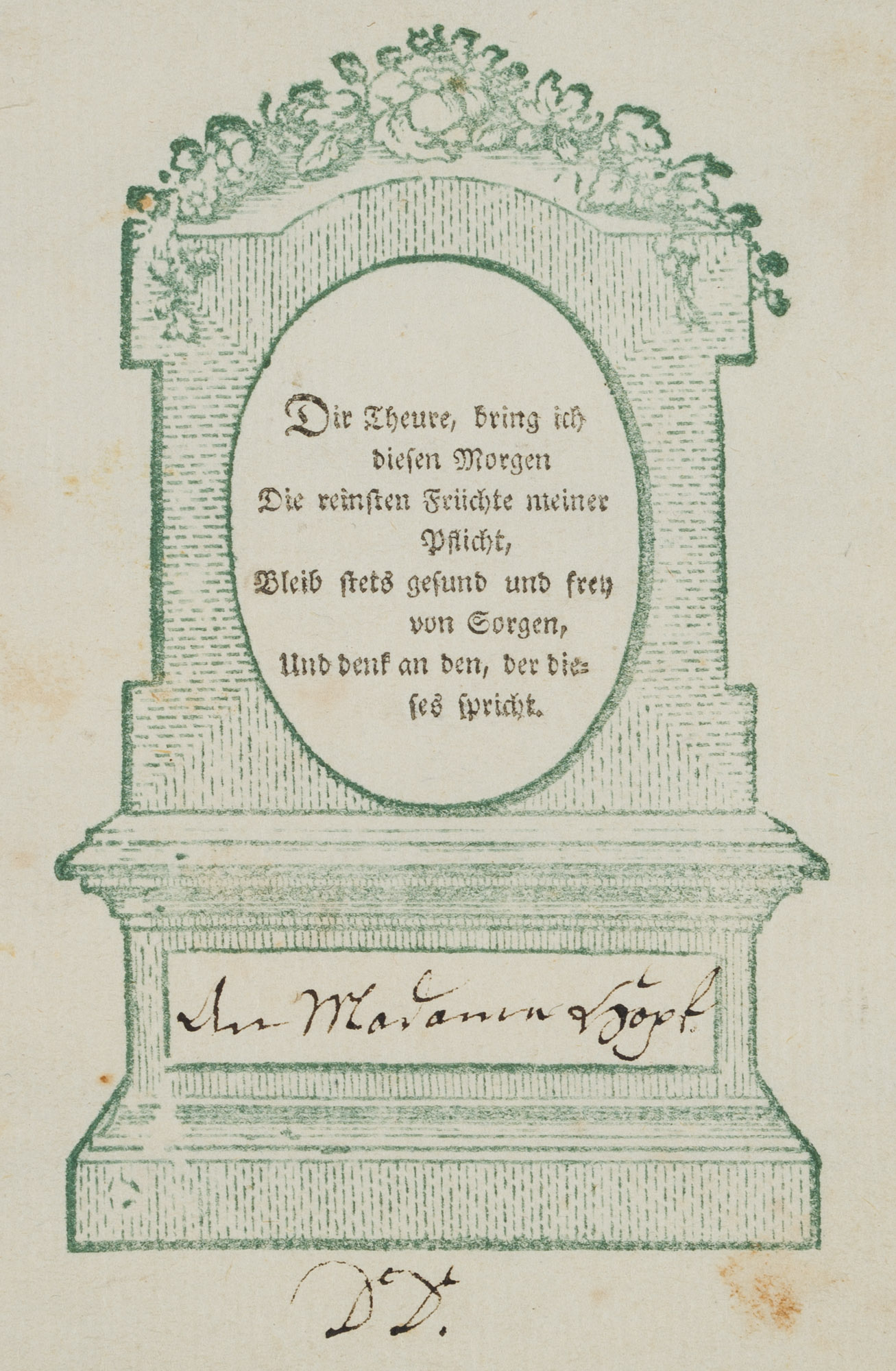 Unbekannt (18. Jahrhundert), Denkmal mit Segens und Glückwünschen, , Glückwunschbillet