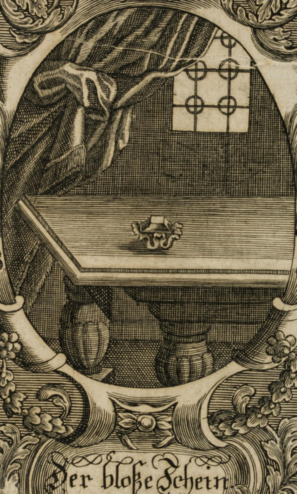 - Description: The picture is inscribed below with the title “Der bloße Schein”. Illustration from Johann Arndt’s (1555-1621) compilation “Sechs Bücher vom wahren Christentum nebst dessen Paradies-Gärtlein”. Backside with typographic print. Please note our other offers on Johann Arndt’s compilation.
