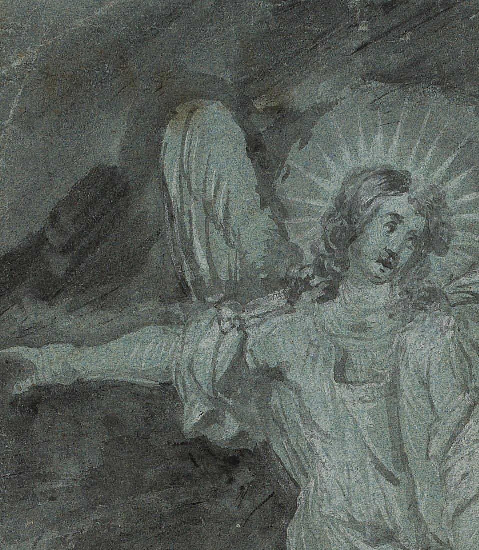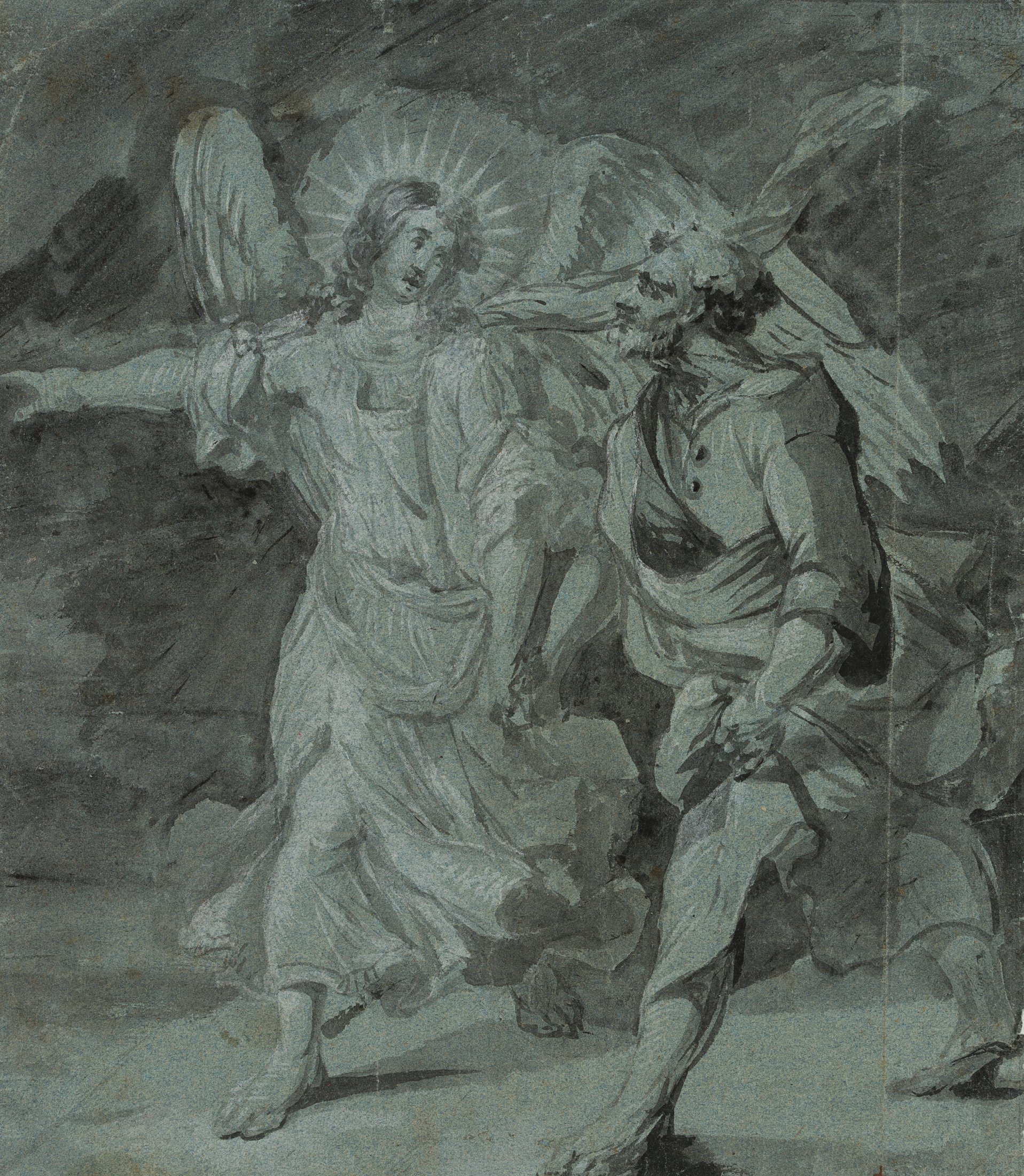 Unknown (18th century), The angel leads Joseph, c. 1720, Brush drawing