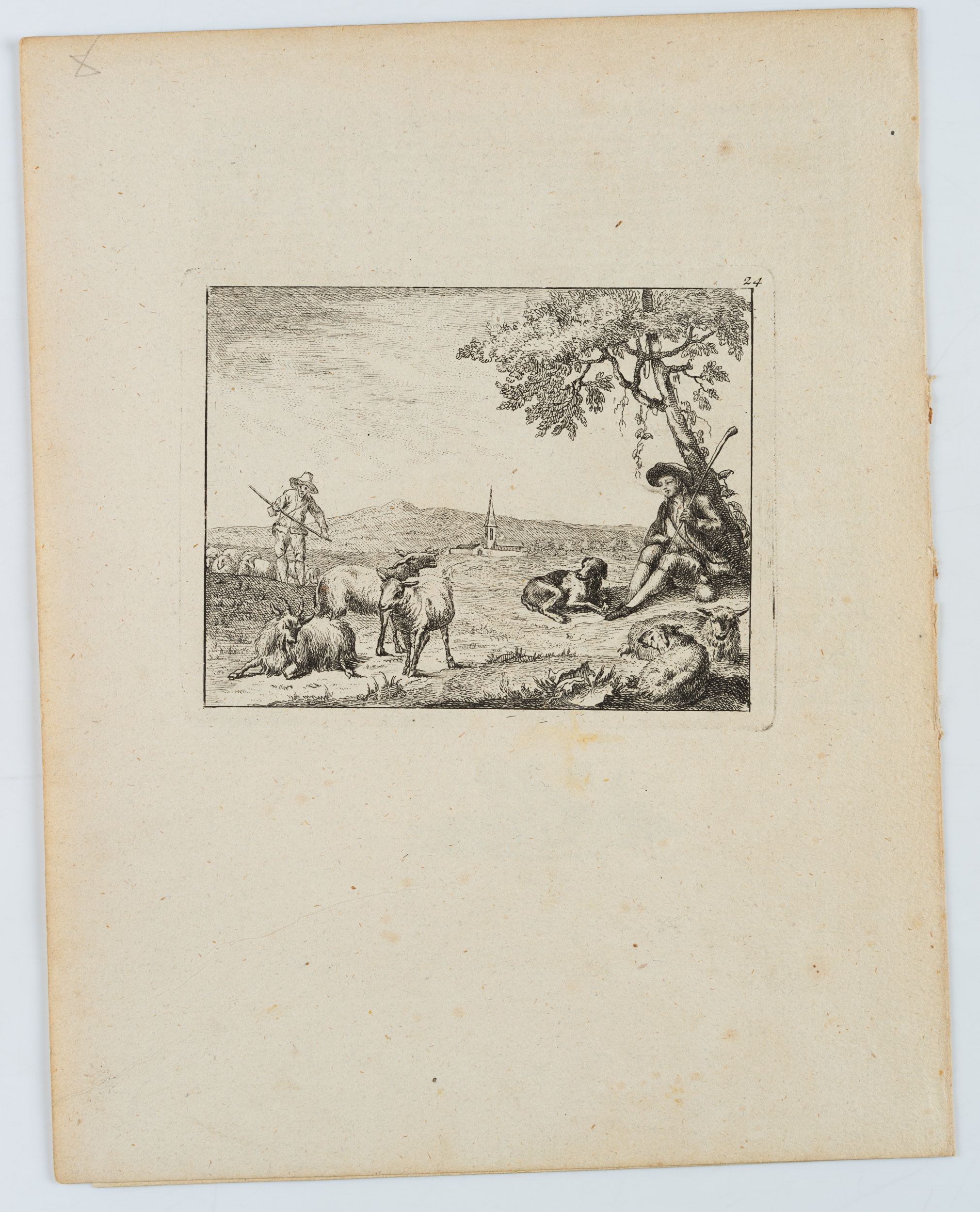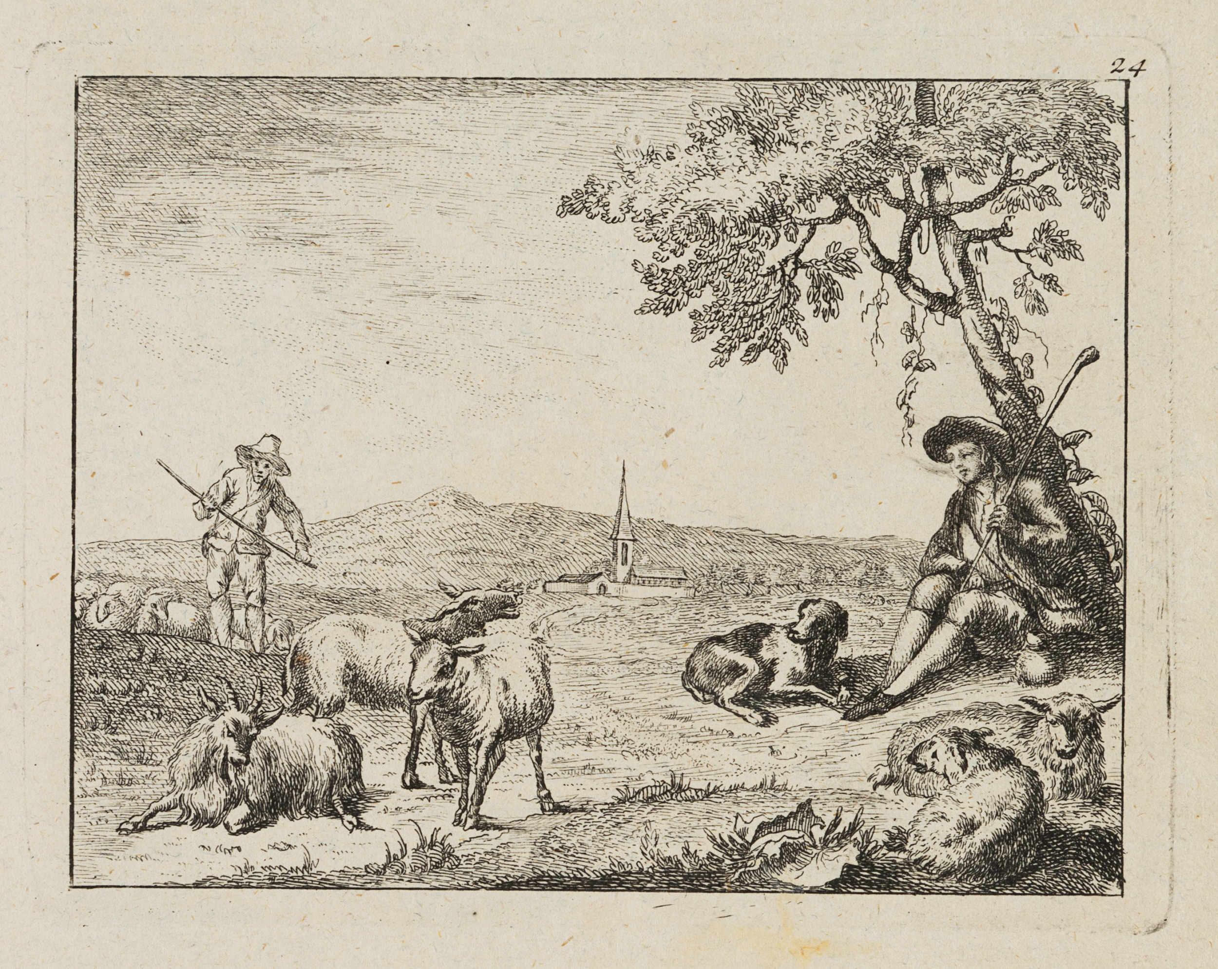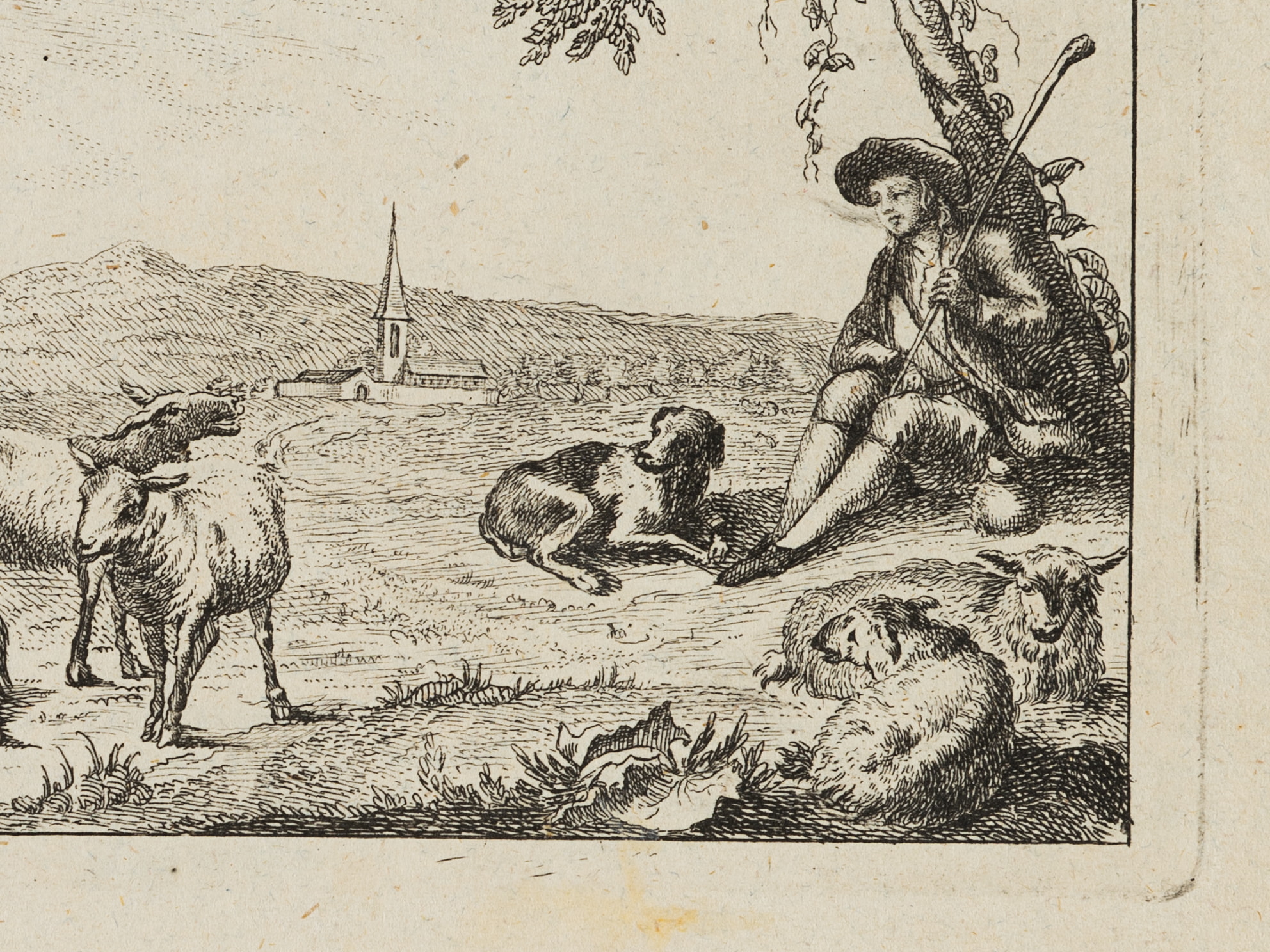 - Schlagworte: Hirte, Schäfer, Schafe, Kirche, Natur, Landschaft, Baum, Gras, Weide, Tiere, Bock, Schafsbock, Hirtenstab, Landschaft, Deutschland, Schaf, Barock, 1750-1799