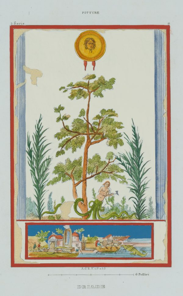 - Keywords: Pompeii, Herculaneum, fresco, antiquity, frieze, ornament, Roman mural, ancient culture, classicism, Pompeian style, fantasy landscape, dryad, tree spirit, tree nymph, 18th century, Roman, Mythology, Italy,