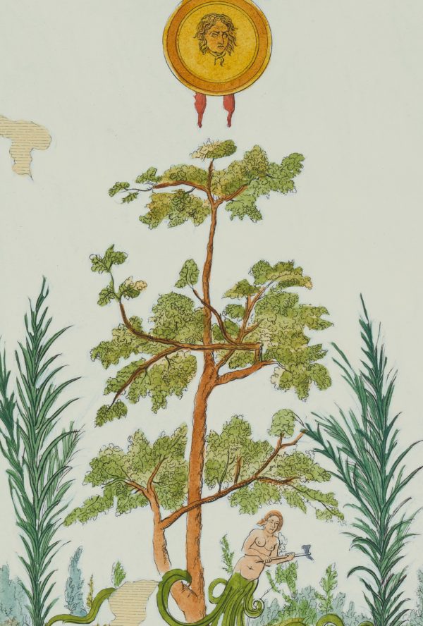 Unbekannt (18. Jahrhundert), Dryade zwischen Bäumen und Gebüsch. Nach pompejanischen Fresko, um 1770, Kupferstich