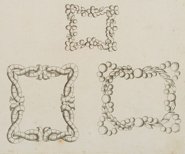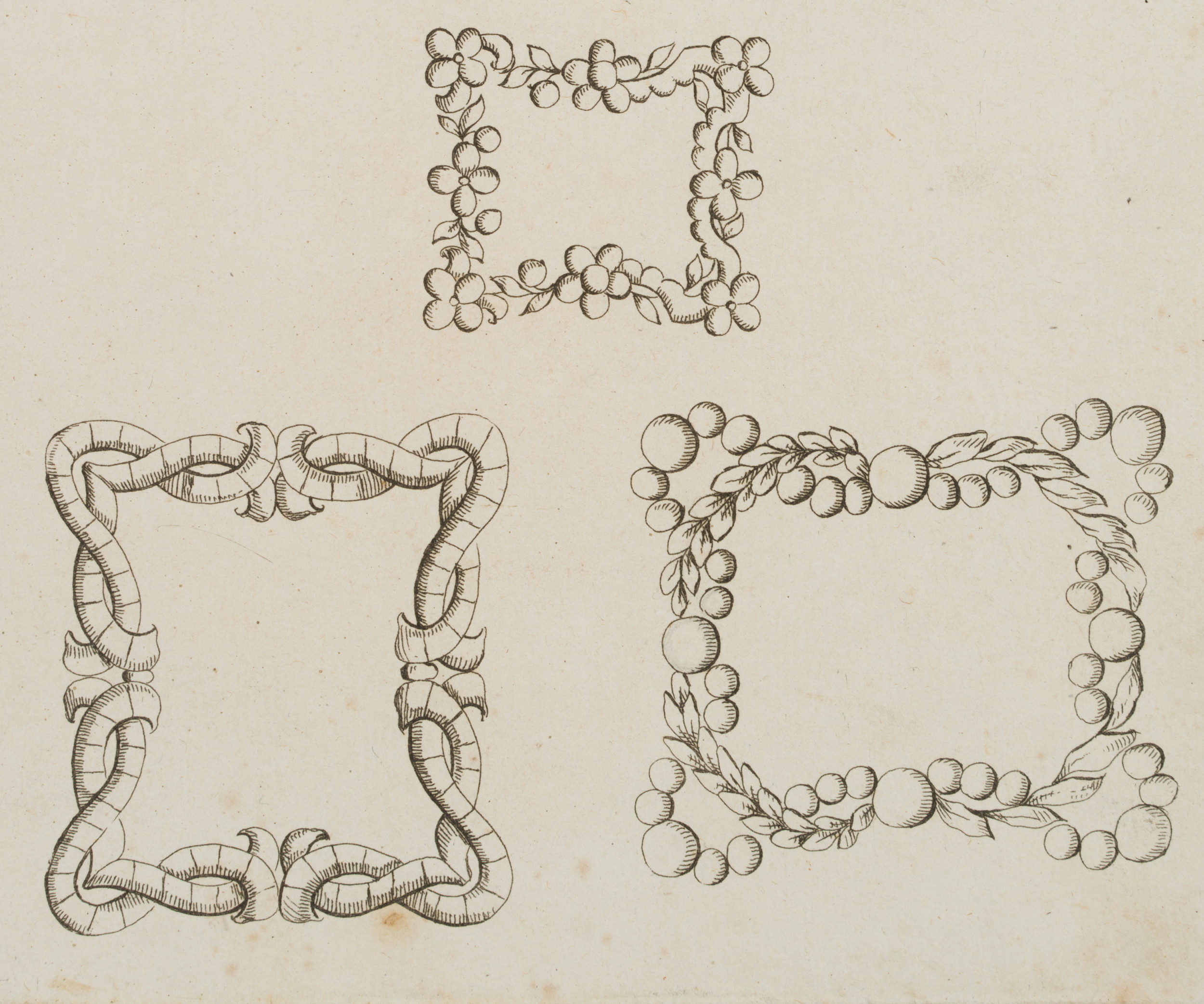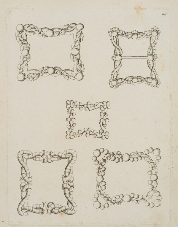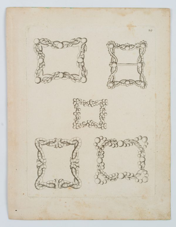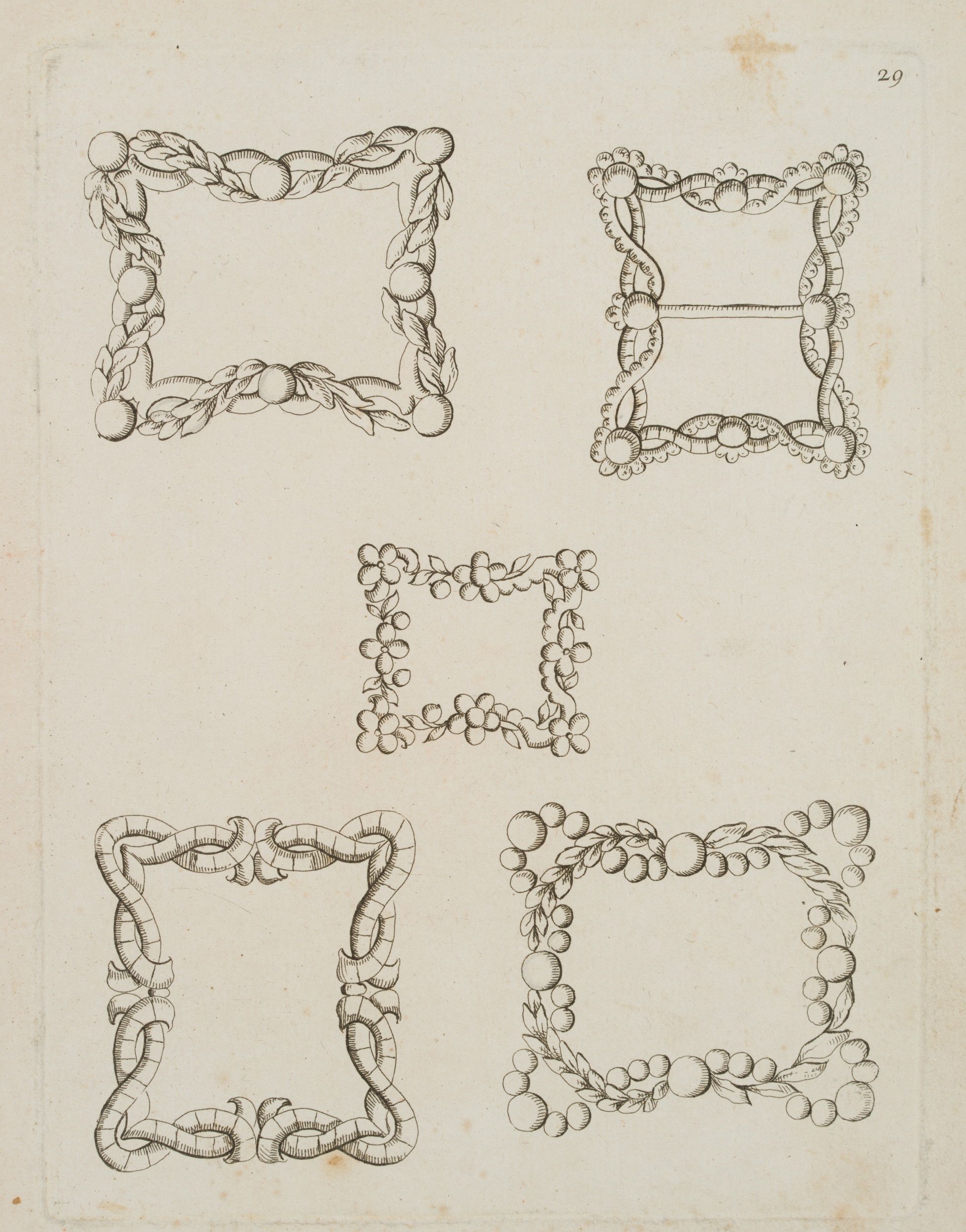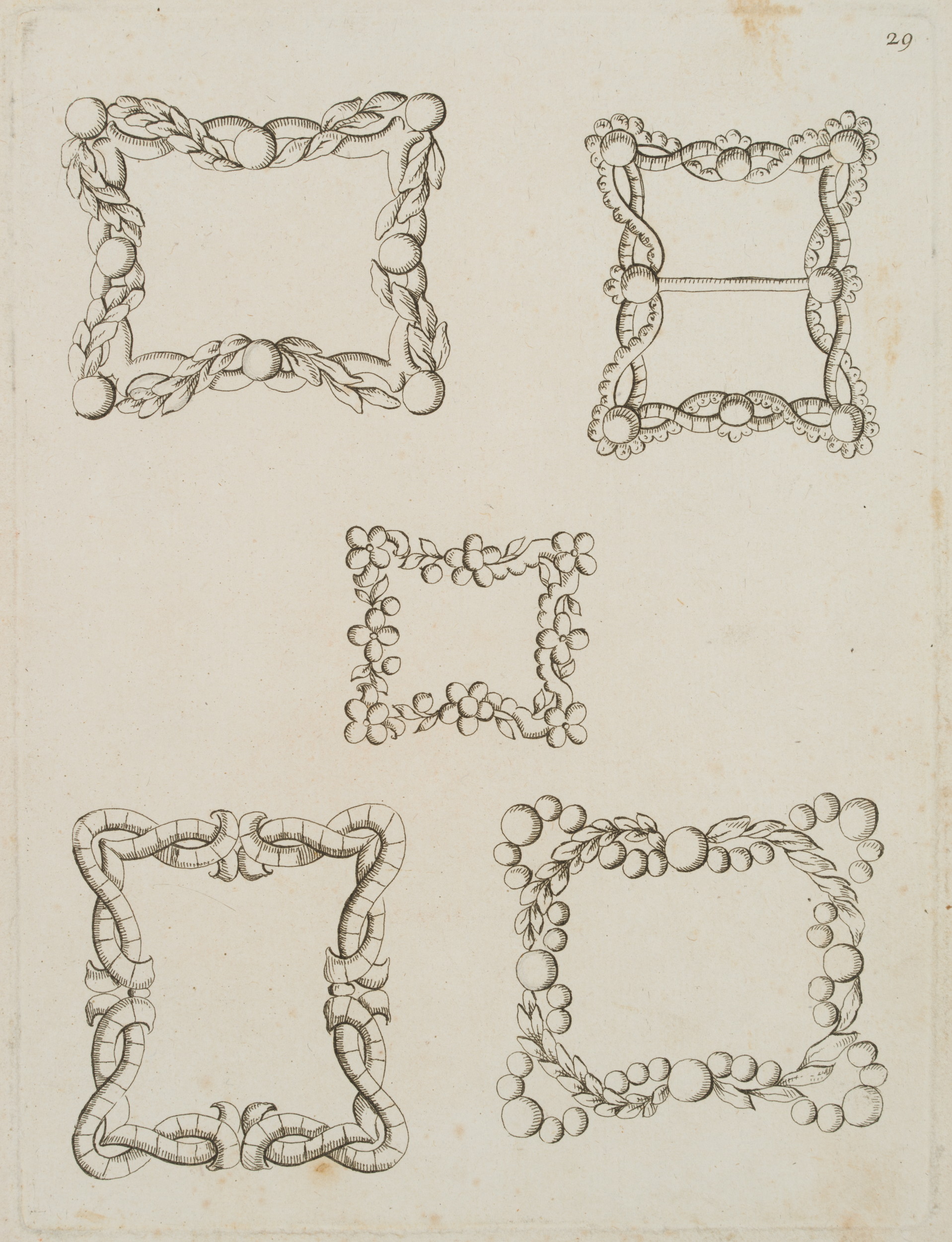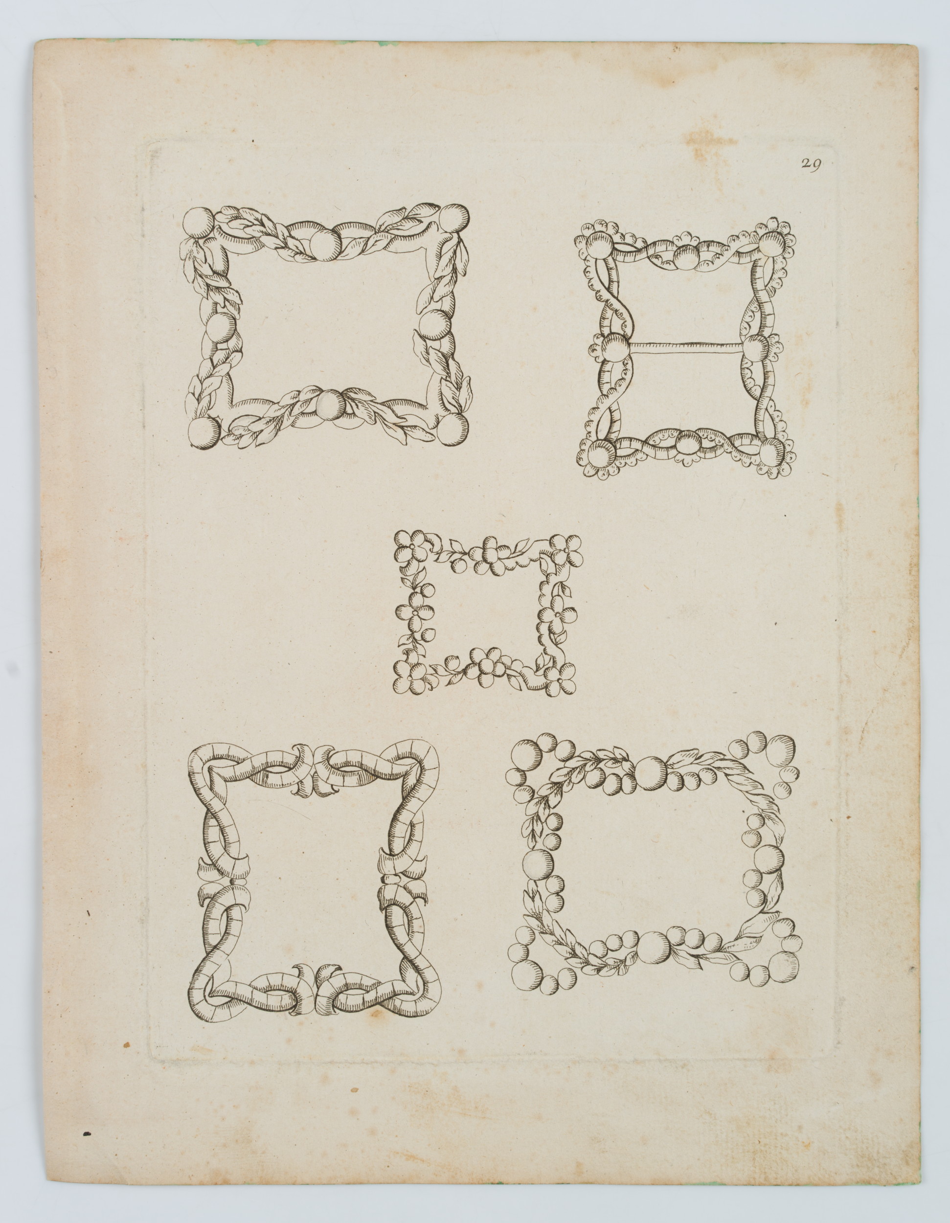 Unbekannt (18. Jahrhundert), Entwurf floraler Dekorrahmen. 5 Rahmen, , Kupferstich