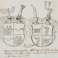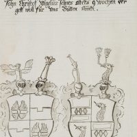 Unknown (18th century), Drawing after the epitaph of Maximilianus Hundt of Lautterbach (died 1619) and Maria Isabella Hundt, with ancestral coat of arms of the Hundt family of Lautterbach, coat of arms, heraldry, c. 1700, Pen drawing