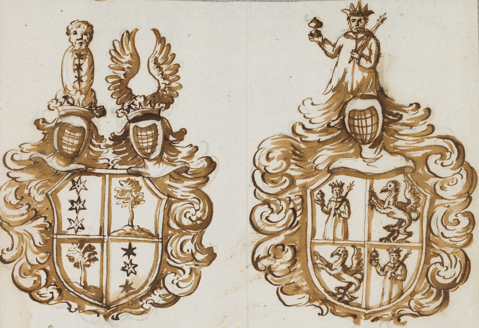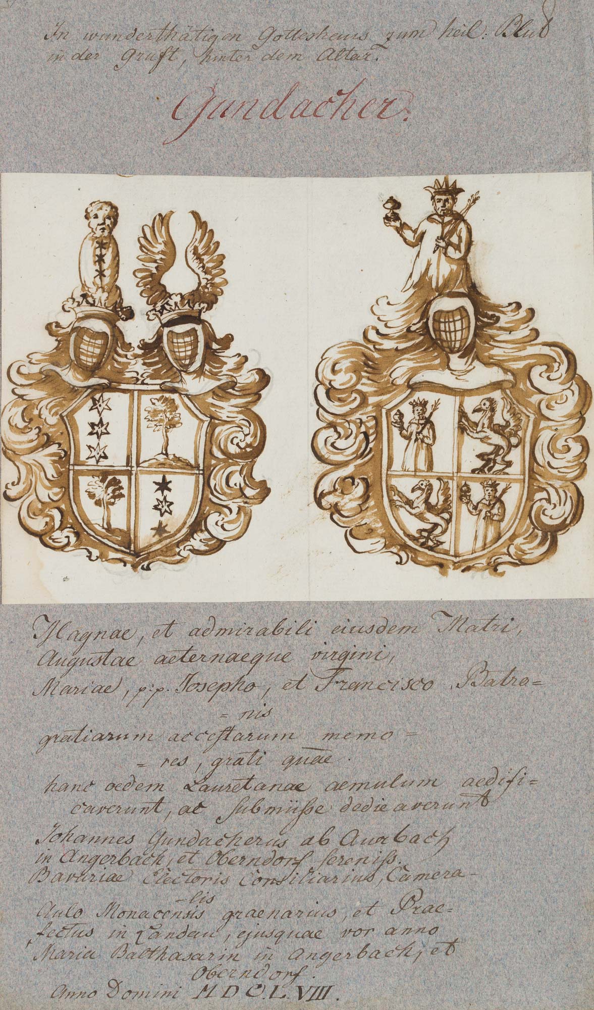 Unknown (18th century), Drawing after an epitaph of the Gundachers, Johannes Gundacherus, coat of arms, heraldry, c. 1700, Pen drawing