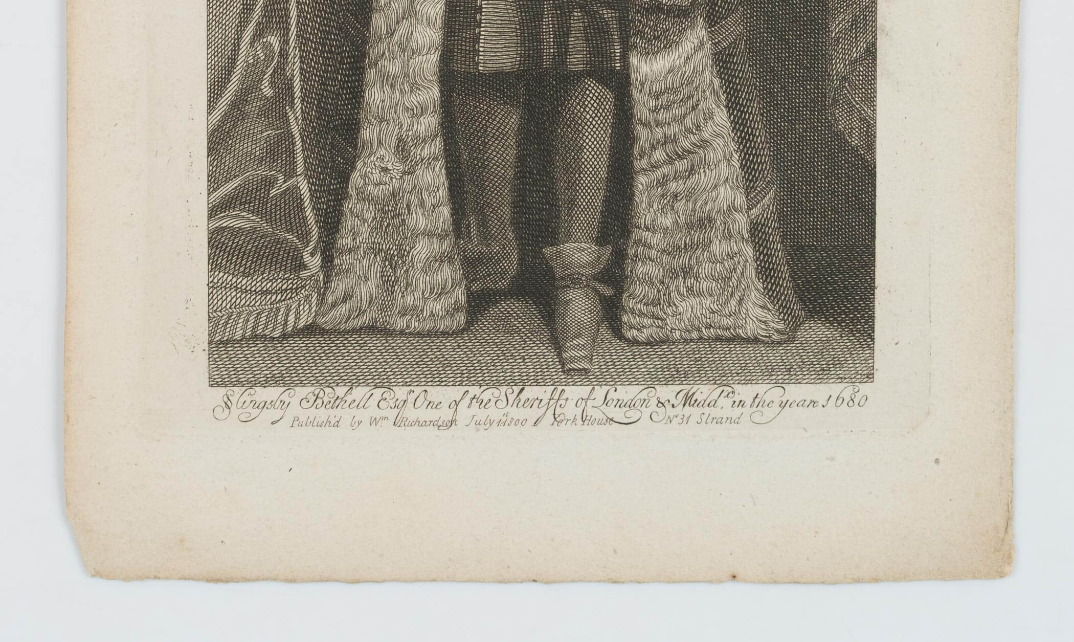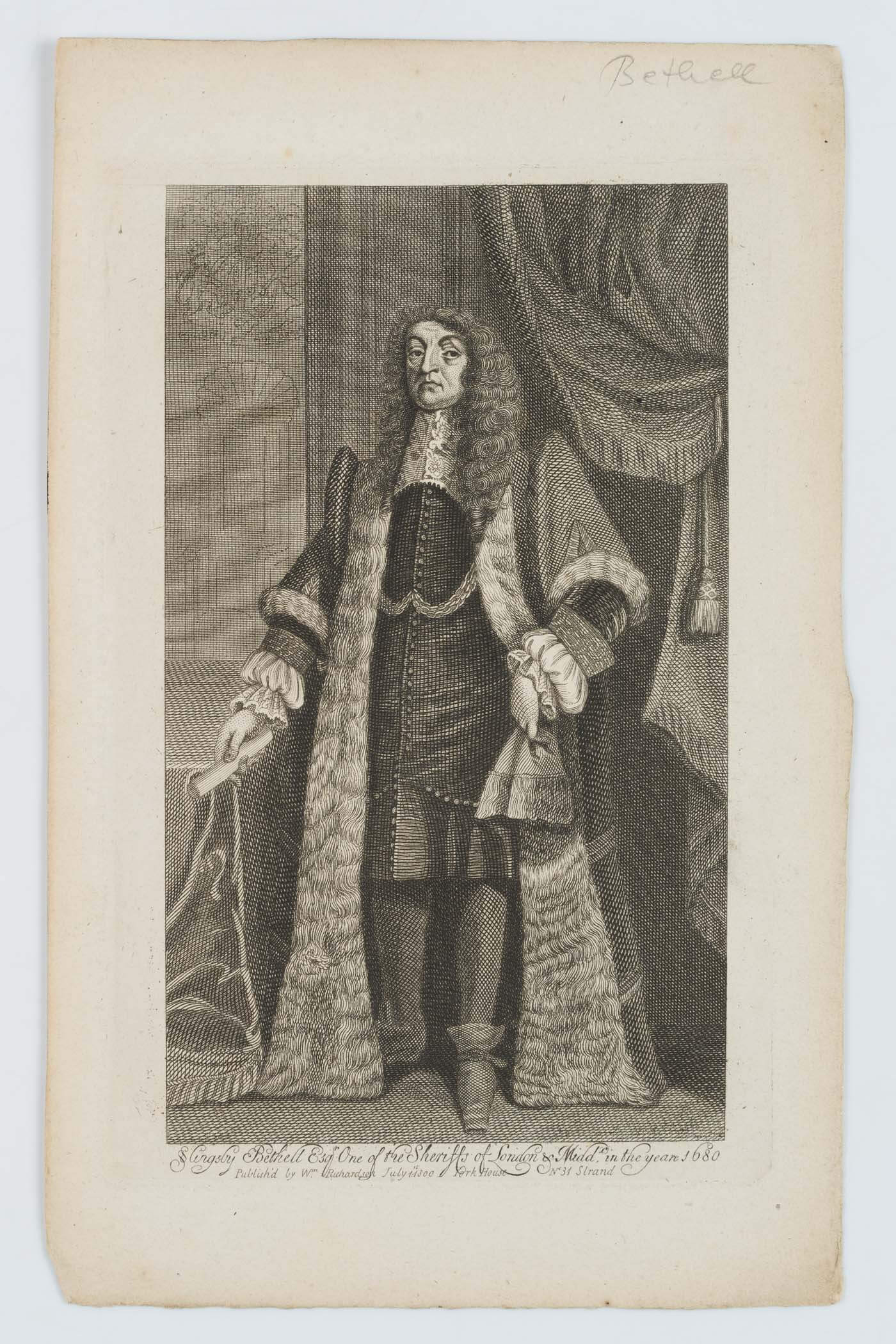- Inscription: Lower middle signed in the printing plate: “”. Lower middle inscribed in the printing plate: “Slingsby Bethell [?] One of the Sheriffs of London & Midd, in the year 1680 “. Lower right numbered in the printing plate: “N. 31 Strand”.