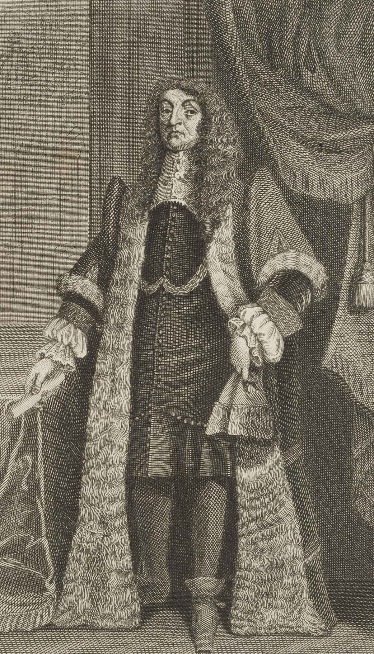 - Description: Representative full-length portrait with dark allonge wig in fur-trimmed coat looking slightly from above towards the viewer
