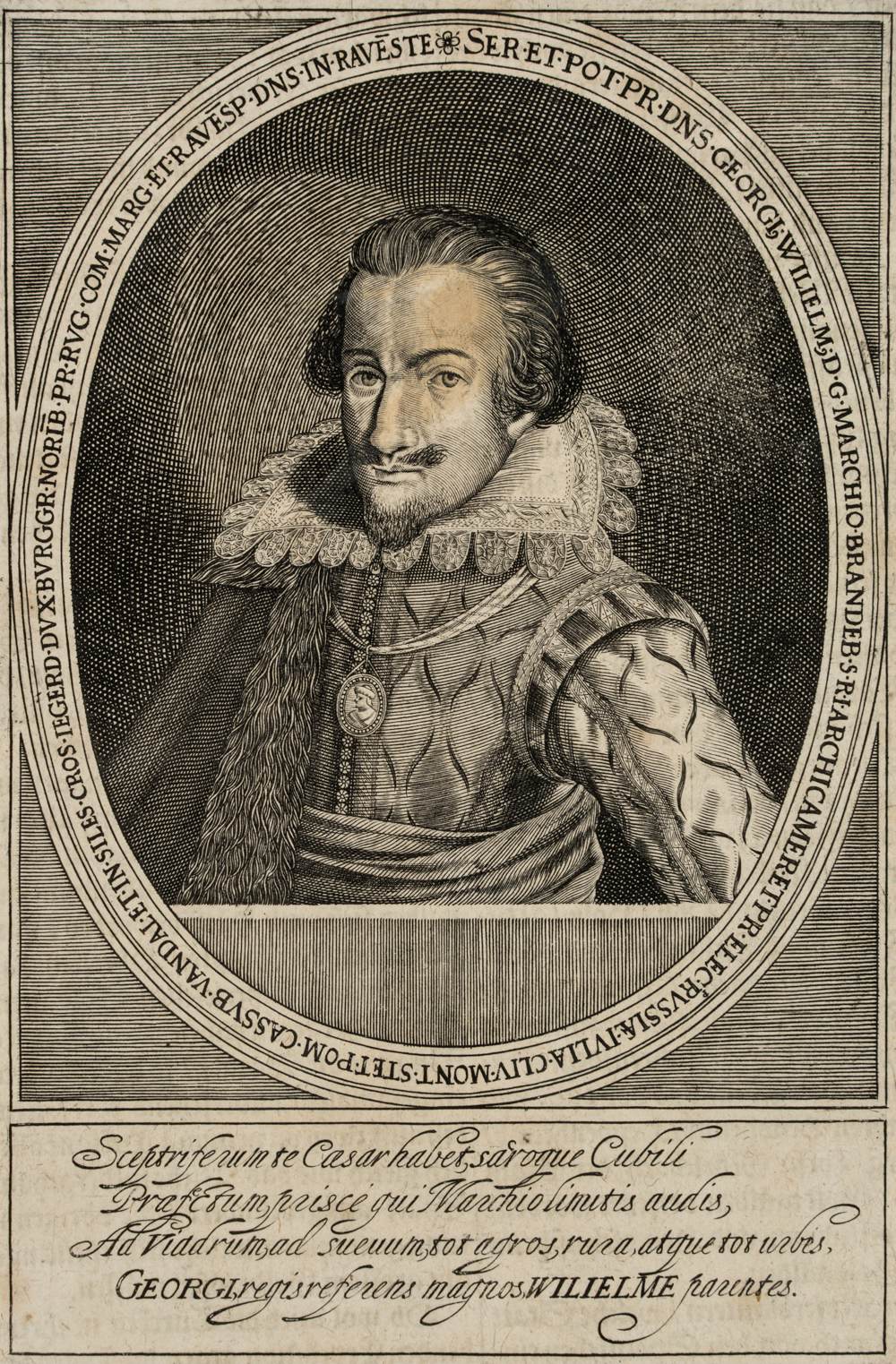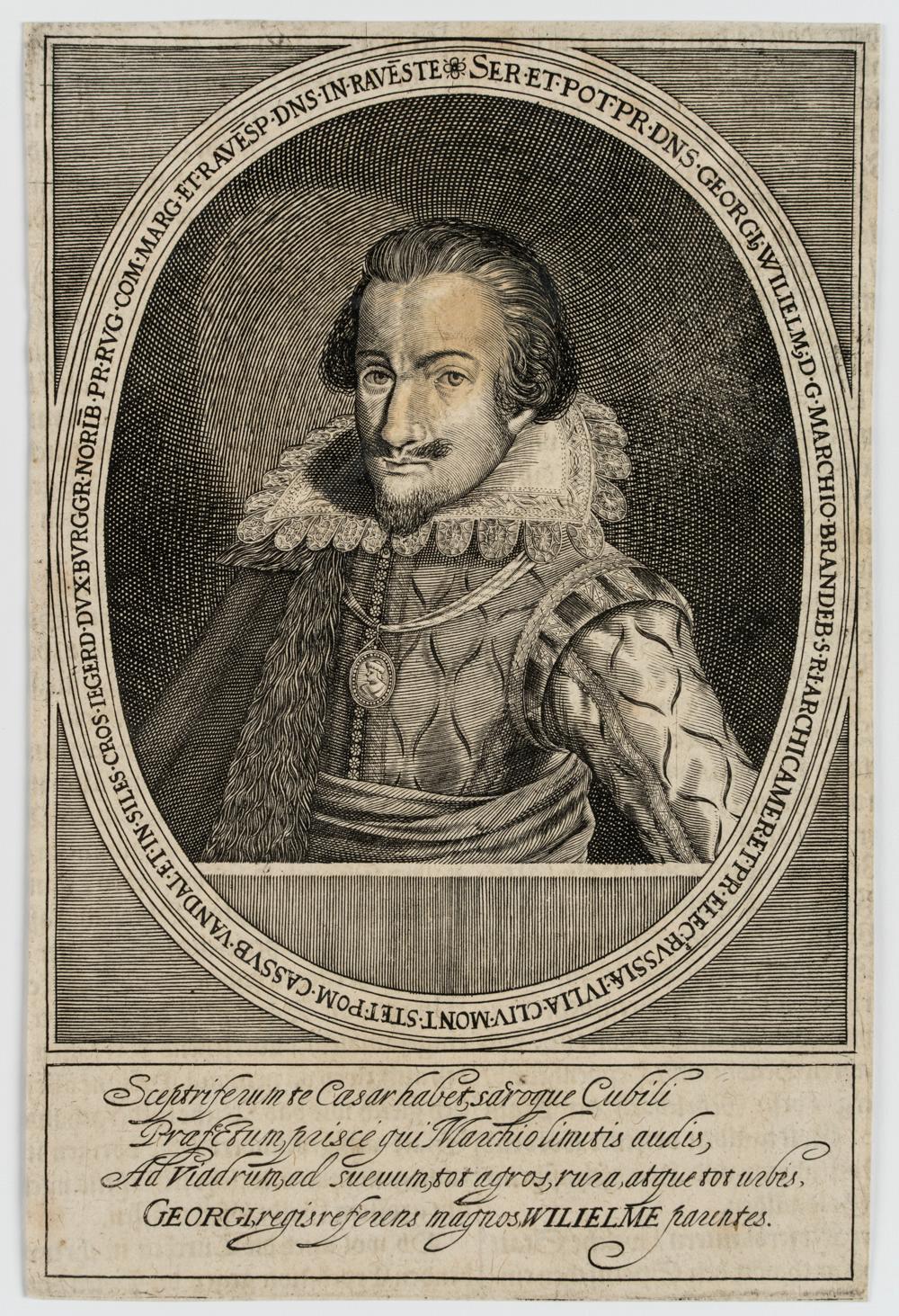 Unknown (18th century), Portrait of George William of Brandenburg (1595 Cölln – 1640 Königsberg) from the House of Hohenzollern, Elector and Margrave of Brandenburg, 18th century, Copper engraving
