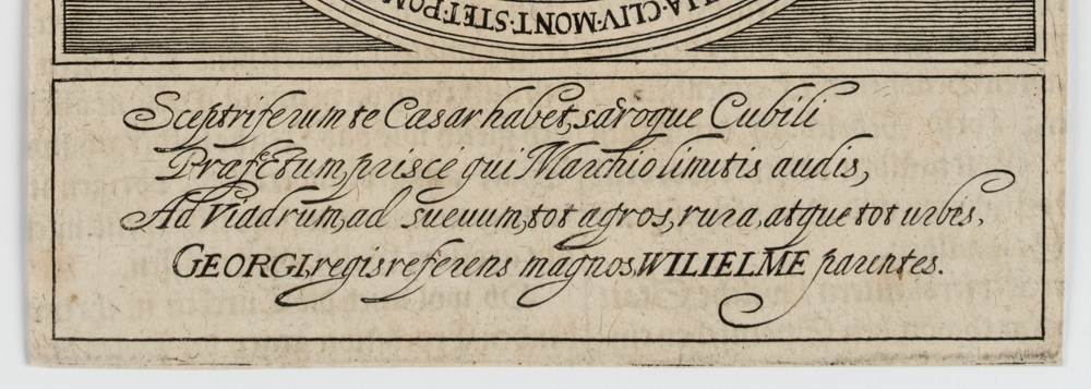 - Bezeichnung: Unterhalb in der Druckplatte bezeichnet. Rückseitig befindet sich ein typographischer Druck.