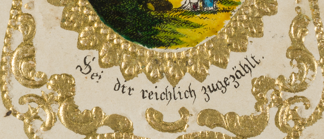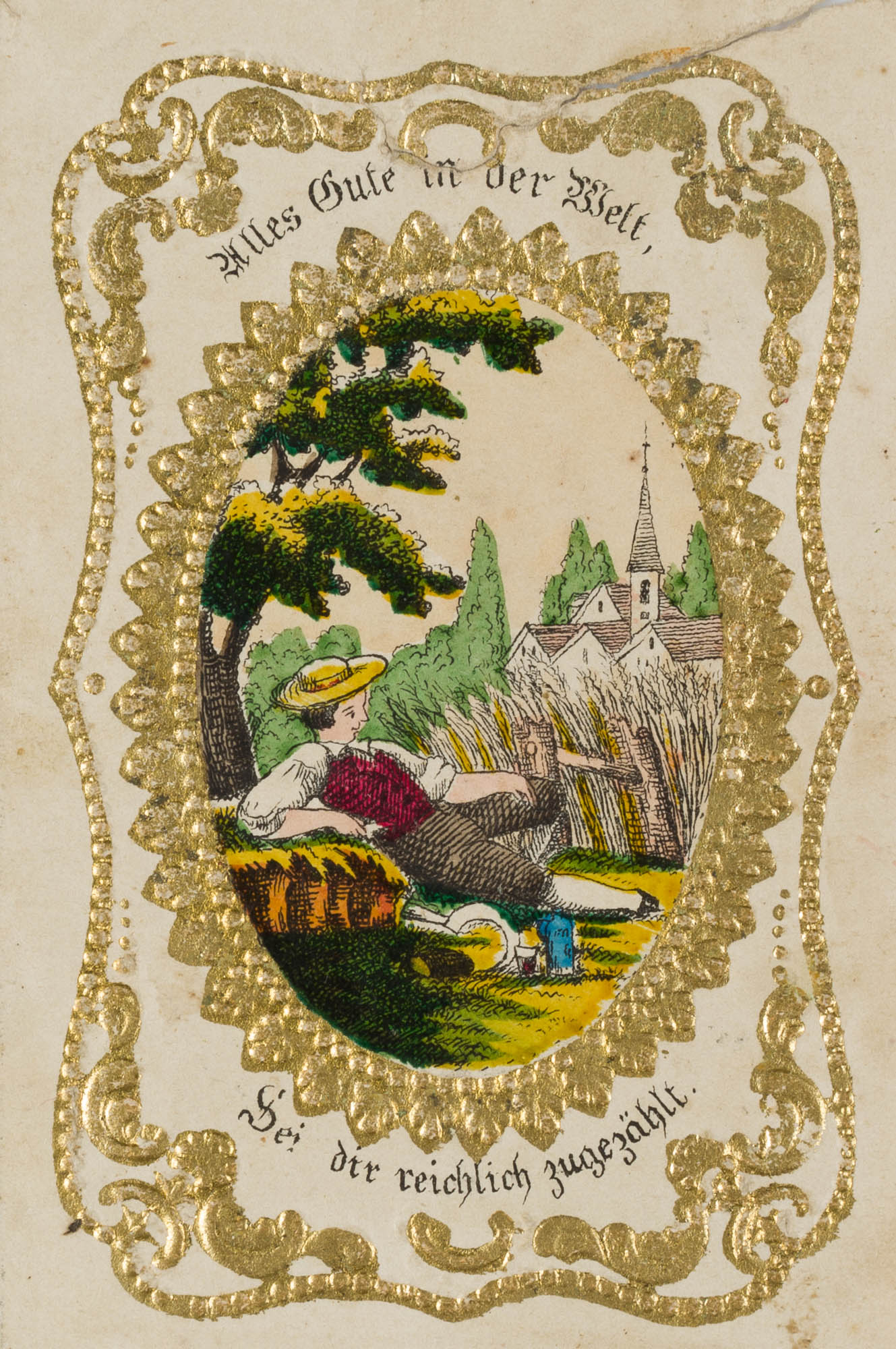 Unbekannt (18. Jahrhundert), Glückwunschkarte, “Alles Gute in der Welt”, 18. Jahrhundert, Chromolithographie