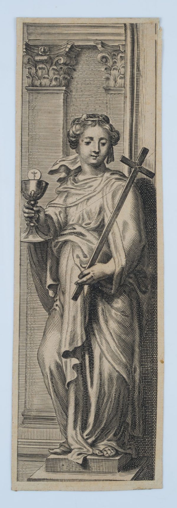 Unknown (18th century), Depiction of saints, saint in classical antique garb with host, chalice and cross, 18th century, Copper engraving