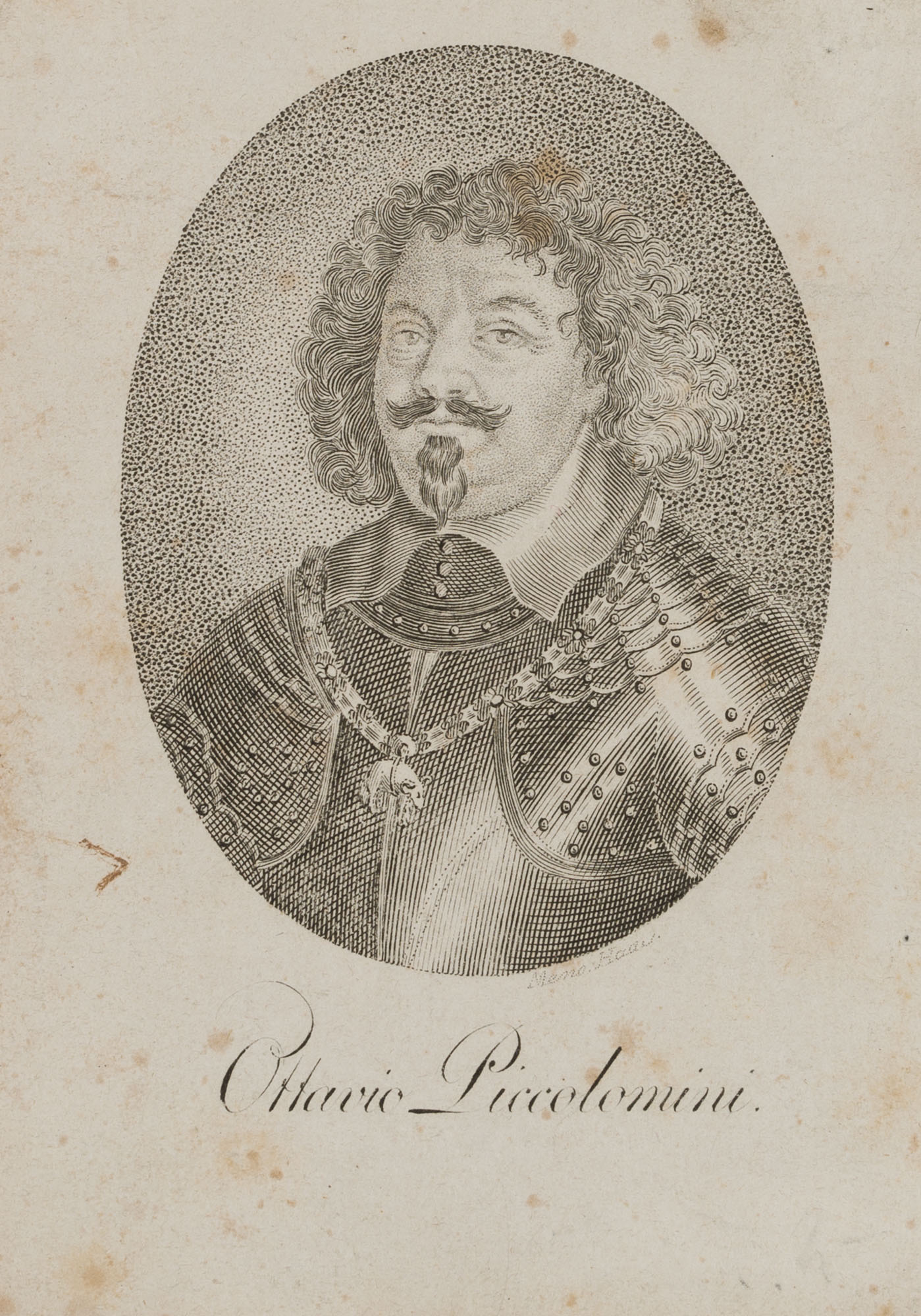 - Description: Titled below the depiction, with artist’s signature “Meno Haan(?)” at lower right. Not least because of one of the leading roles in Schiller’s trilogy of dramas Wallenstein, Octavio Piccolomini has remained a well-known figure to this day.
