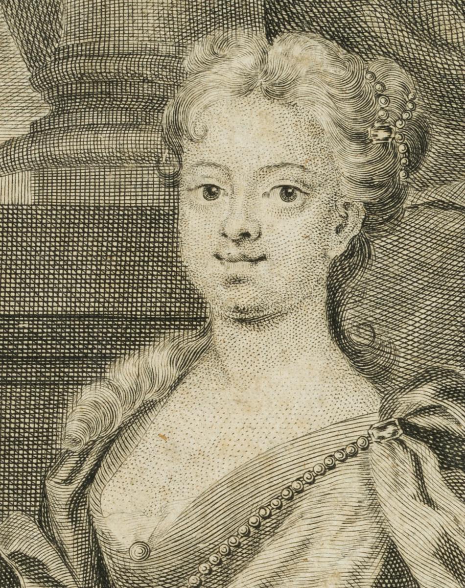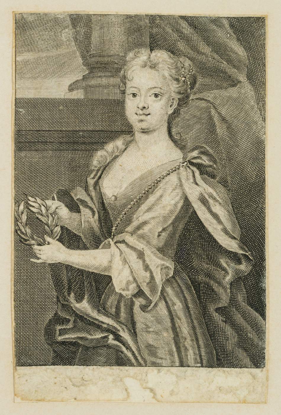 Unbekannt (18. Jahrhundert), Junge Dame, Allegorie des Sieges, 18. Jahrhundert, Kupferstich