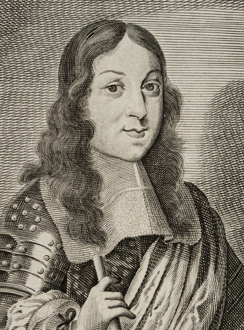 - Beschreibung: Halbfiguriges Porträt im Halbprofil im Oval. Un befindet sich das Wappen des Dargestellten. Darunter in der Druckplatte bezeichnet: “Carlo Ré di Suetia, Gotia Ostrogotia, Vandalia Gran Principe di Finilandia”.