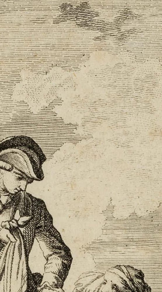 Unknown (18th century), Cavalier and weeping girl, 18th century, Copper engraving
