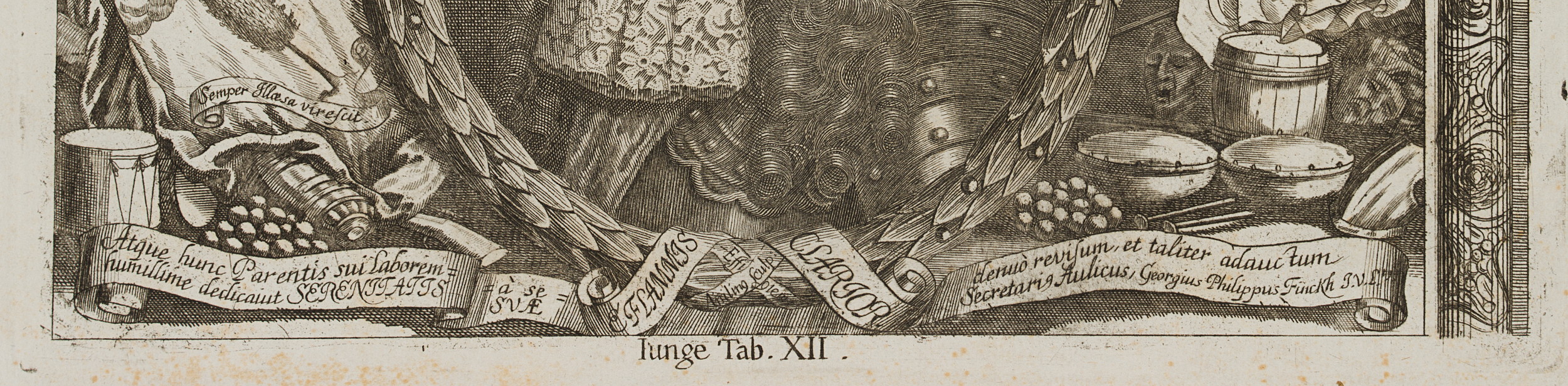 - Inscription: inscribed in the printing plate: “Serenmo. et potentmo. principi ac dno dno Maximiliano Emmanueli […]”.