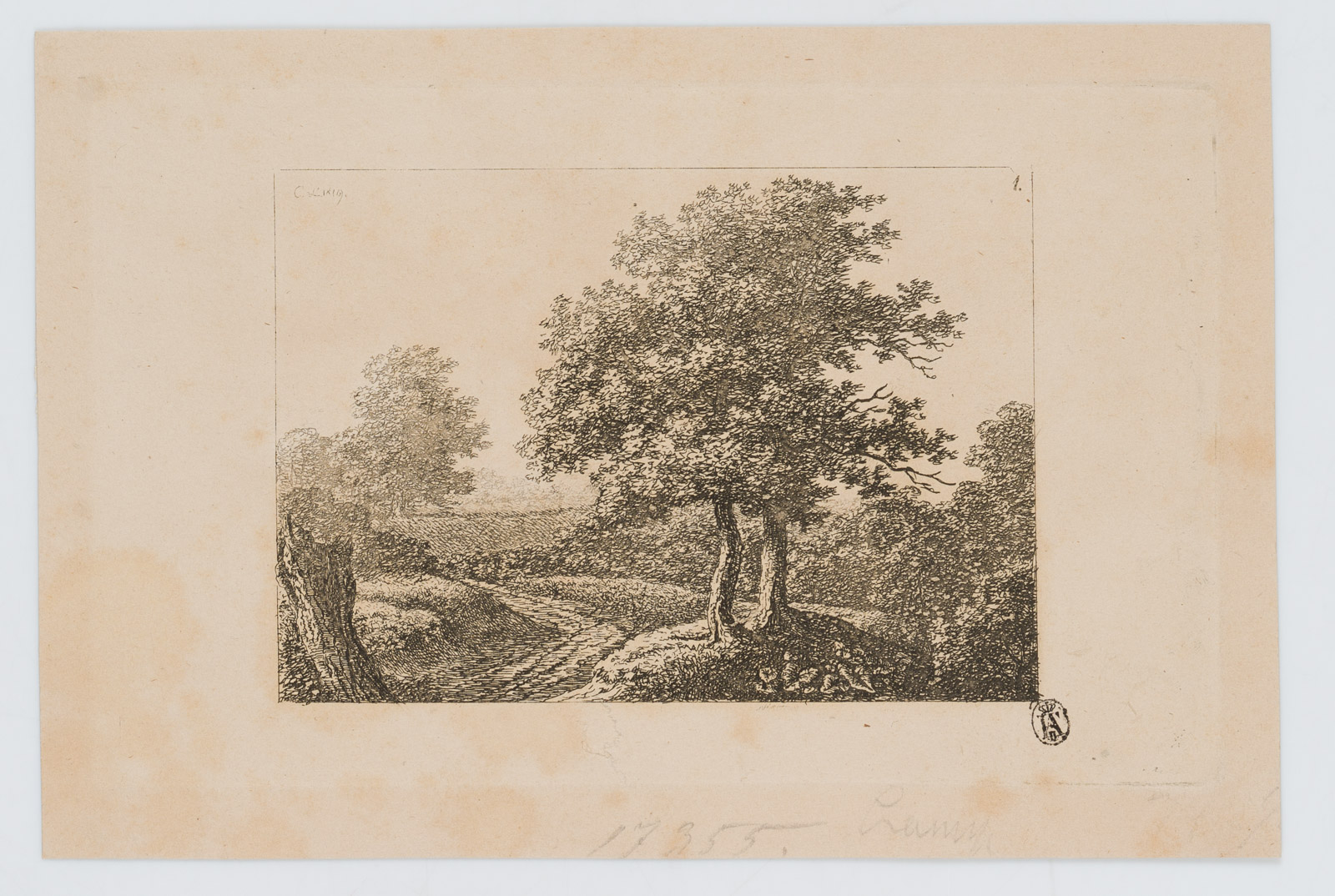 Unbekannt (18. Jahrhundert), LAMPE, Landschaft mit Landstraße und prächtigem Baum, 18. Jahrhundert, Radierung