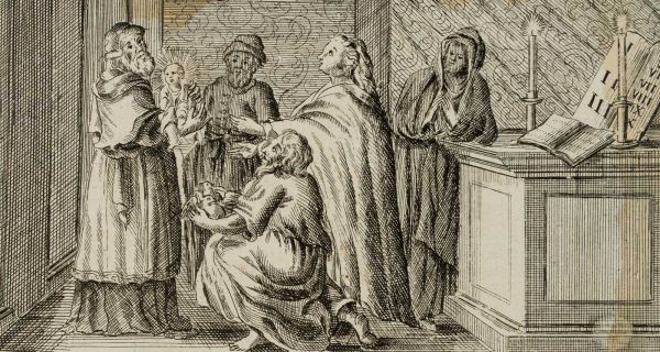 Unknown (18th century), Bible illustration Purification of the Virgin Mary and Annunciation of the Lord, c. 1750, Copper engraving