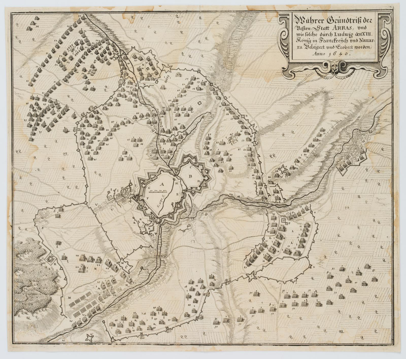 Unbekannt (18.Jhd), Militärische Karte. Belagerung Arras 1640, Barock