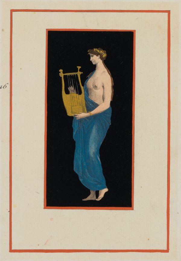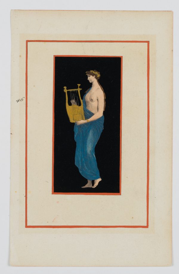 - Schlagworte: Pompeij, Herculaneum, Fresko, Antike, Fries, Ornament, römische Wandmalerei, antike Kultur, Klassizismus, Pompejanischer Stil, Muse, Instrument, Erato, Nymphe, Mythologie, Italien, Neapel (Kampanien), Römisch, 1750-1799