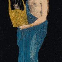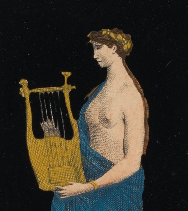 antique culture, classicism, Pompeian style, muse, instrument, erato, nymph, 18th century, Roman, Mythology, Italy, - Size: 19,0 cm x 12,0 cm (7,5 x 4,7 in), Depiction: 10,3 cm x 5,2 cm (4,1 x 2 in)