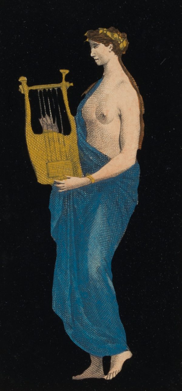 Unknown (18th century), Muse in blue robe with kithara, c. 1770, Copper engraving