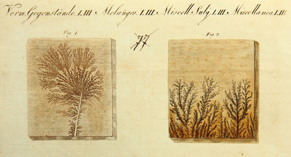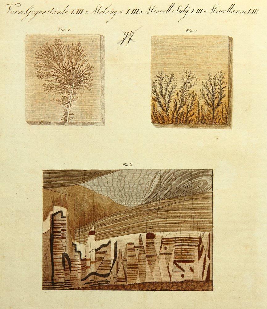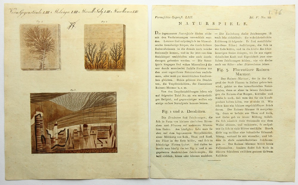 Unbekannt (18. Jahrhundert), Naturspiele in Dendriten und Florentiner Marmor, um 1800, Kupferstich
