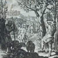 - Description: Literary illustrations, from Lukas Schermers Pozy, published in Amsterdam in 1725 by Johannes Ratelband, page 169. Illustration from ‘Veltzang’.
