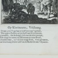 Unknown (18th century), Op Klorimeene, Veldzang’, copperplate engraving from Lukas Schermer’s Poëzy, 1725, Copper engraving