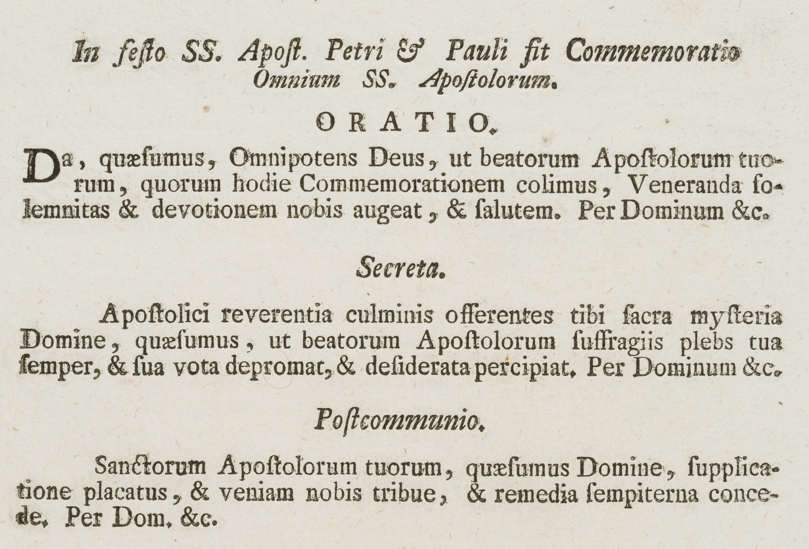 Unknown (18th century), “Oratio”, Collect Prayer, Oration for the Service in Latin, Proprium, 18th century, Copper engraving