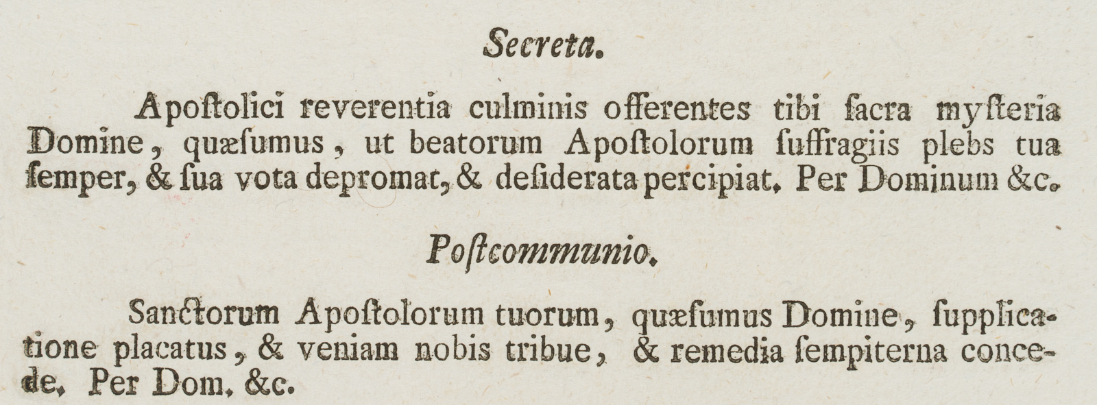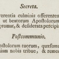 - Description: With the three parts “Oratio”, the “Secreta” prayed silently by the priest and the final prayer after communion: “Postcommunio”.