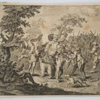 Unknown (18th century), Sudden assault during a rest stop, c. 1750, Etching