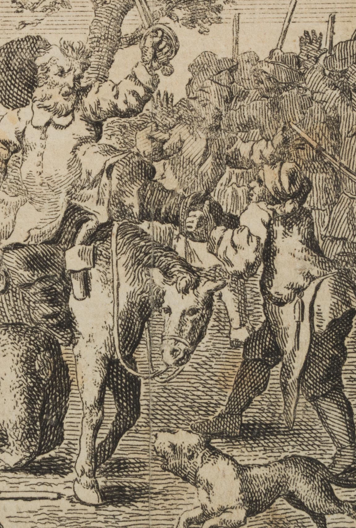 Unbekannt (18. Jahrhundert), Plötzlicher Überfall während einer Rast, um 1750, Radierung