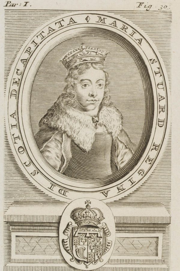 - Description: Portrait medallion of Queen Mary Stuart in queenly regalia.