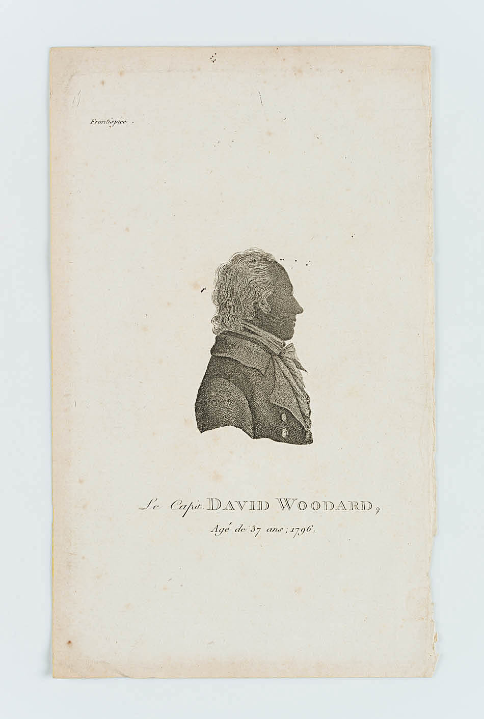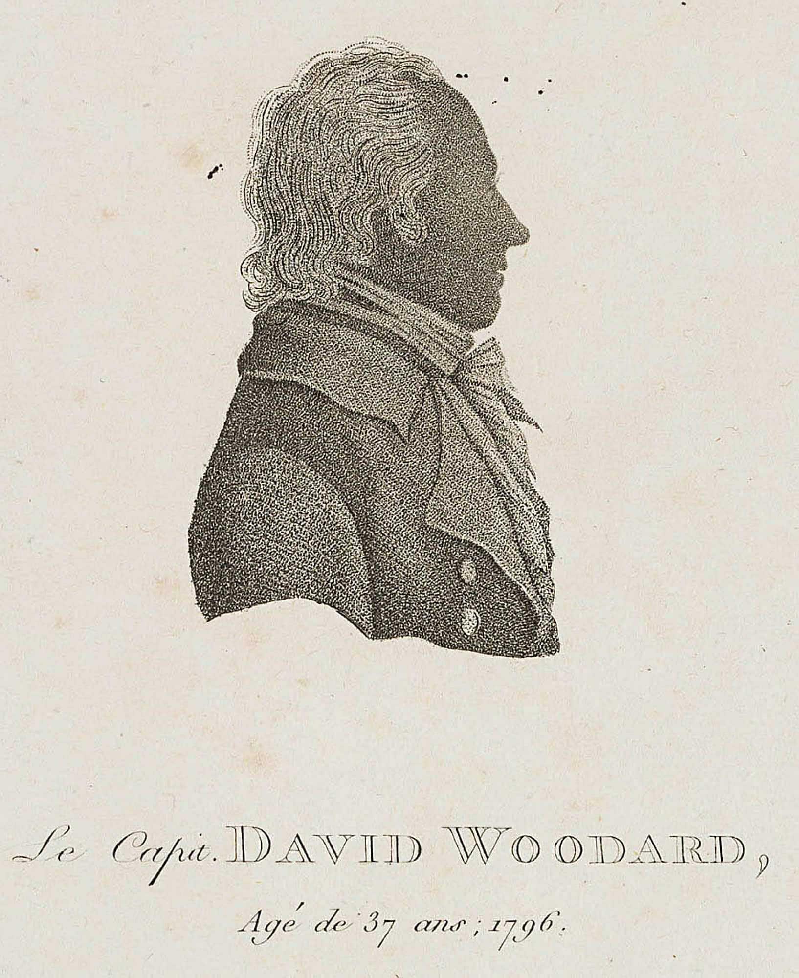 - Bezeichnung: Unten mit dem Namen des Dargestellten bezeichnet: “Le Capit. David Woodard, Age de 37 ans; 1796”.